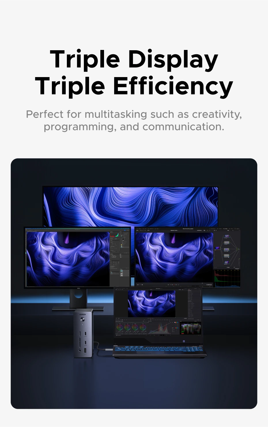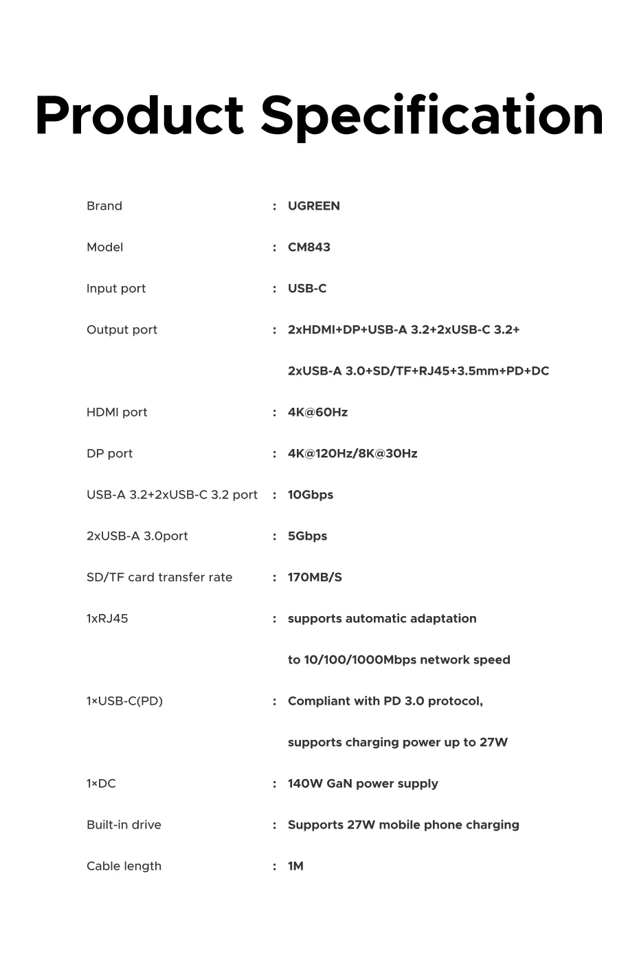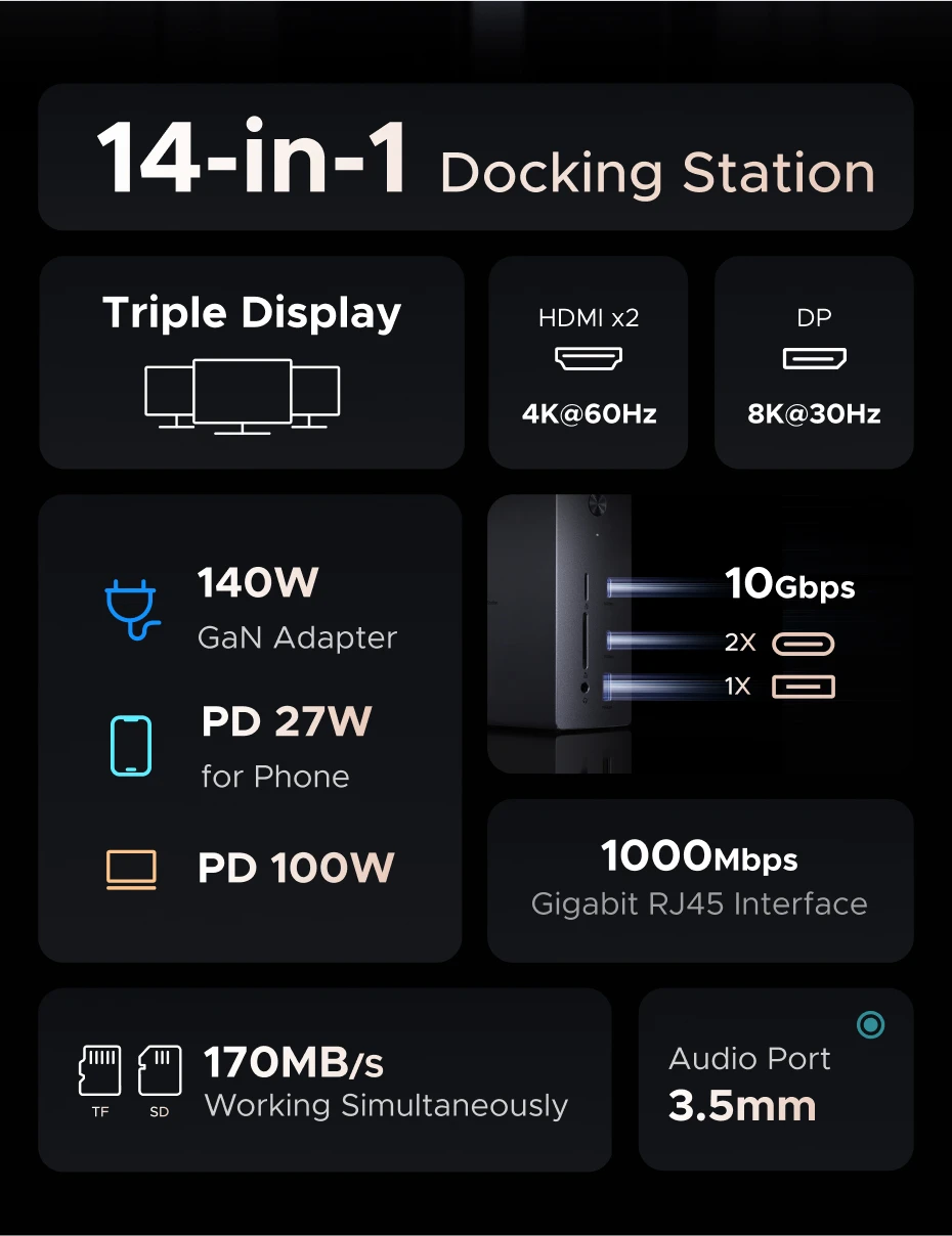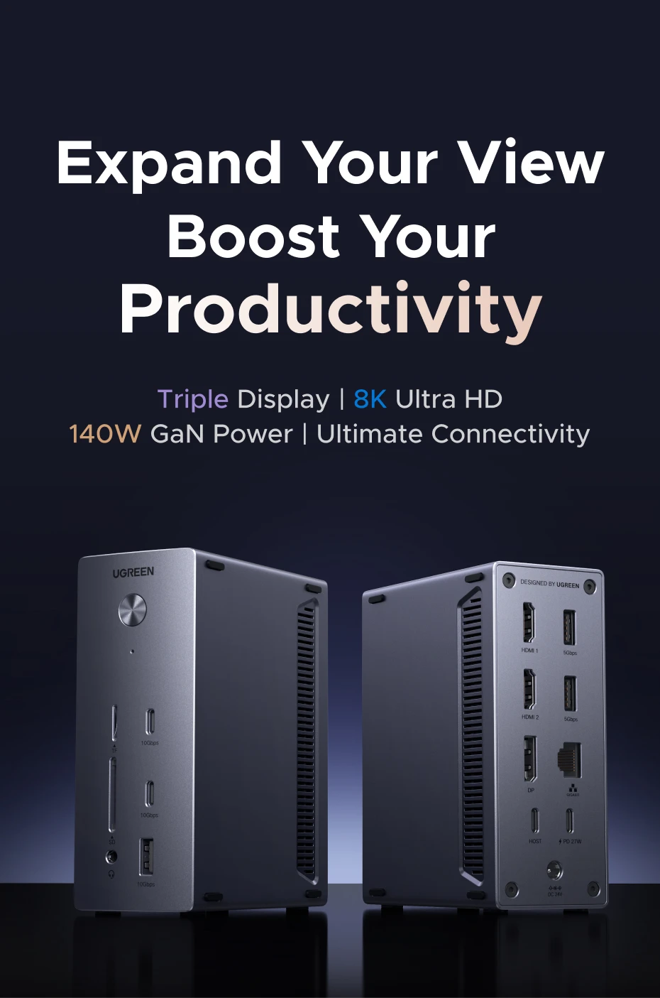 UGREEN 14in1 USB 허브 도킹 스테이션 타입C to PD 4K120Hz 2xHDMI 노트북 SD/TF RJ45 10Gbps 4K60Hz 충전