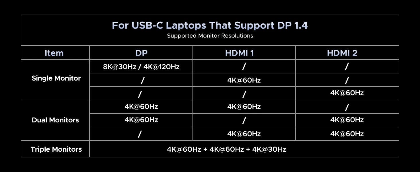 | 1xDP Port | Support DP1.4, 8K30Hz Max, backward compatible with 4K120Hz/60Hz, 2K240Hz/144Hz/120Hz/60Hz, 1080P240/120/60Hz, 720P, 480P. |