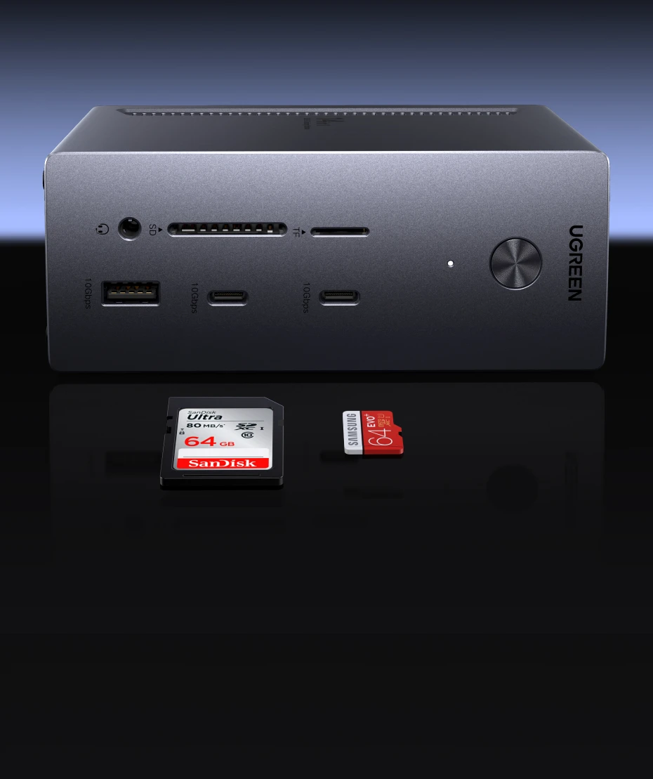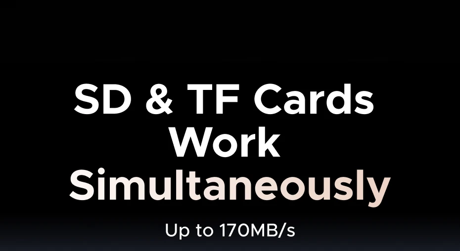 | SD&TF Ports | SD3.0 standard, 170MB/s Max, support 2 cards read and write simultaneously. |