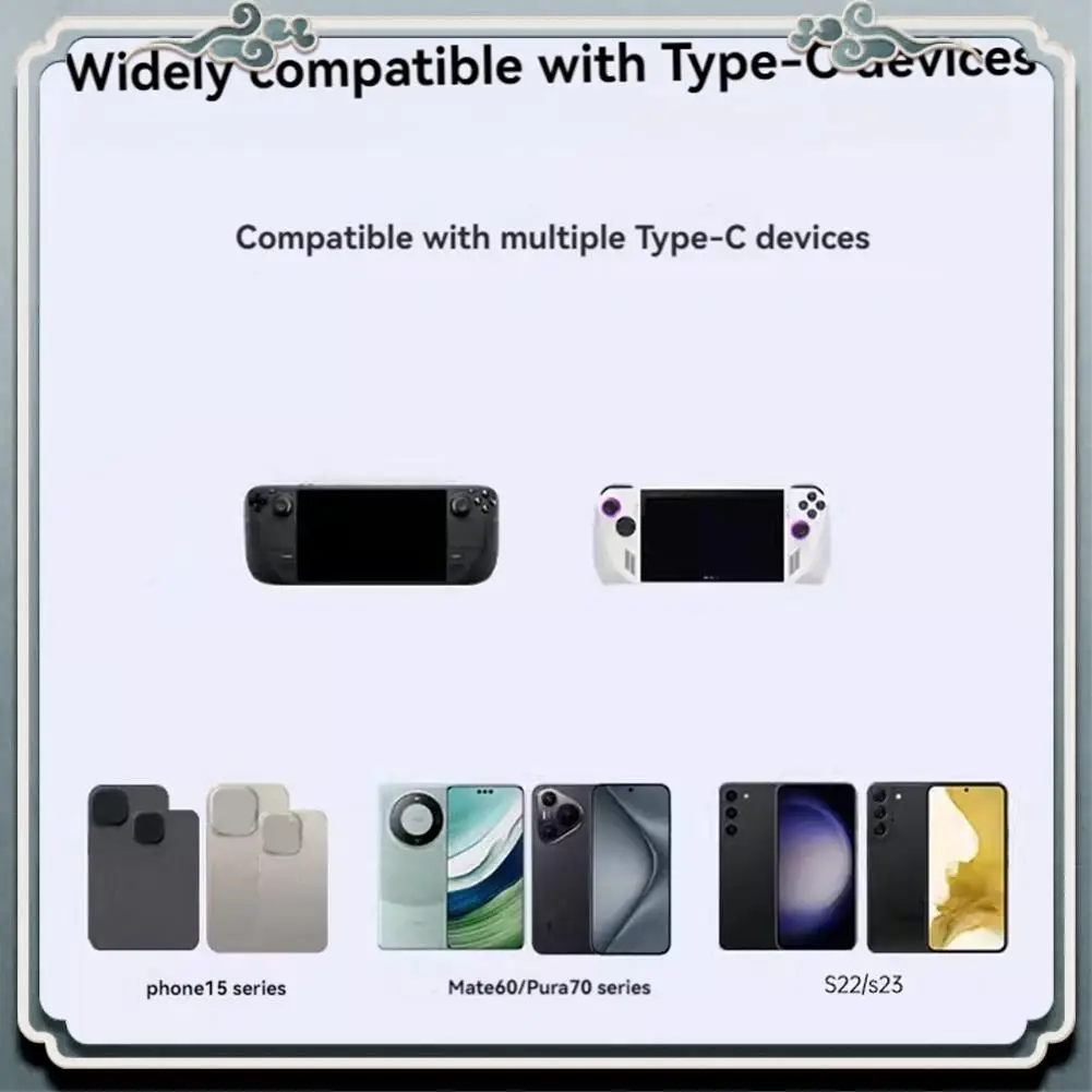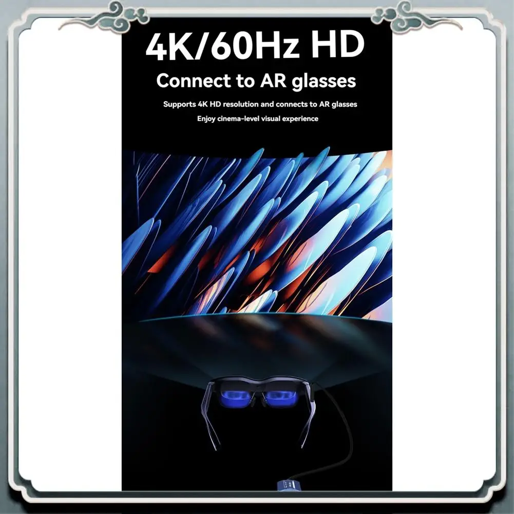 강력한 호환성: 모든 종류의 스마트 안경과 호환 가능: Xreal/Nreal용, Rokid Air/Max용, RayNeo XR용, Viture One용, Thunderbird AR용 등Switch, PS4/5, Steam Deck, ROG Ally 등 다양한 기기와 호환됩니다.모든 종류의 USBC 휴대용 모니터, USBC 프로젝터, Google TV용, Fire TV Stick용 등과 호환됩니다.Thunderbolt4/3 노트북, 휴대폰, 태블릿 등과 호환됩니다.