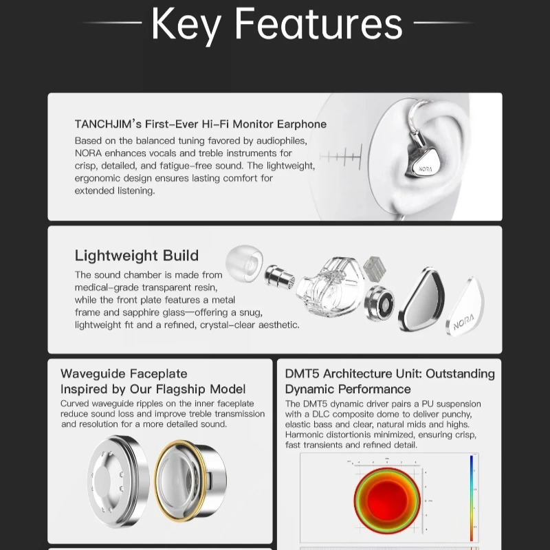 The Tanchjim Nora wired headphones are not just any ordinary earphones; they are designed for the discerning audiophile who appreciates the finer nuances of sound. With A focus on HiFi monitoring, these earphones deliver an immersive listening experience that brings out the richness and depth of your favorite music genres, from the soft sounds of classical to the thumping beats of trap. The highquality metal and plastic construction ensures durability while maintaining A lightweight feel, making them perfect for extended listening sessions.