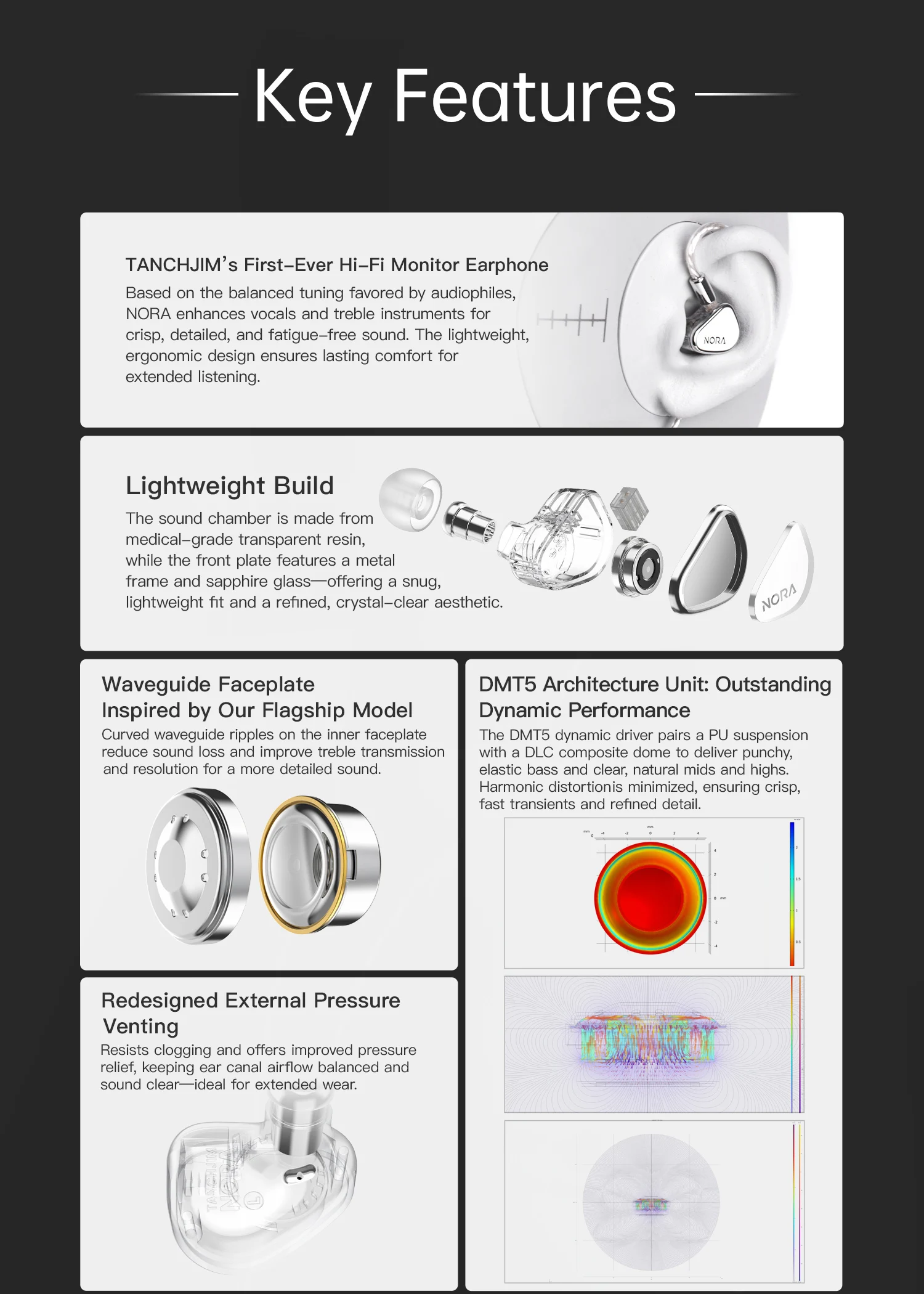 Understanding that comfort is key to an enjoyable listening experience, the Tanchjim Nora earphones come with multiple ear tips to provide A personalized fit for every user. Whether you're A musician looking for precise instrument monitoring or A casual listener seeking A comfortable way to enjoy your favorite tunes, these earphones adapt to your needs. The ergonomic inear design ensures they stay securely in place, minimizing the risk of slippage or discomfort during extended use.