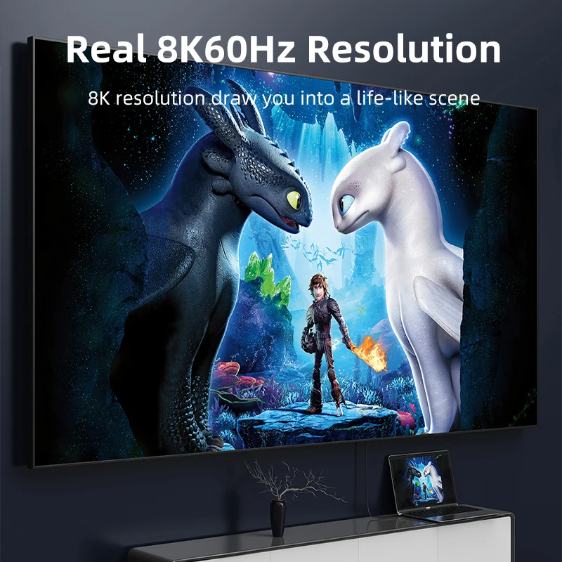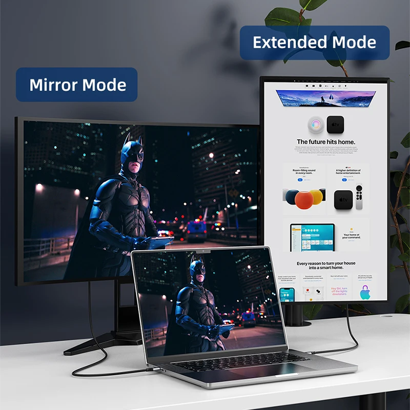 USB C에서 HDMI 2.1 케이블 지원 미러 및 확장 모드. 화면을 쉽게 미러링하거나 확장하여 8K UHD 또는 3D 비디오를 HDTV, 모니터 또는 프로젝터로 직접 스트리밍 할 수 있습니다.