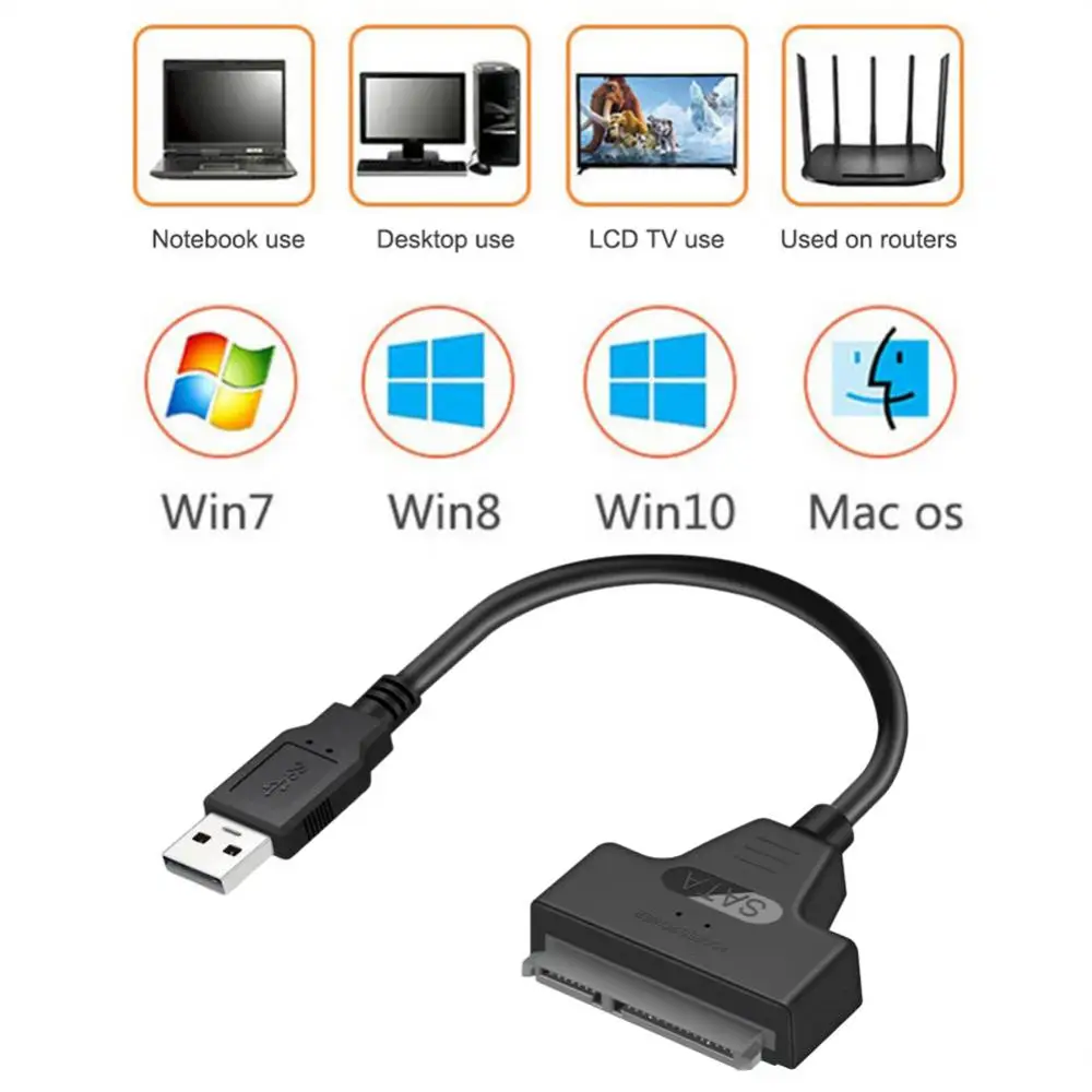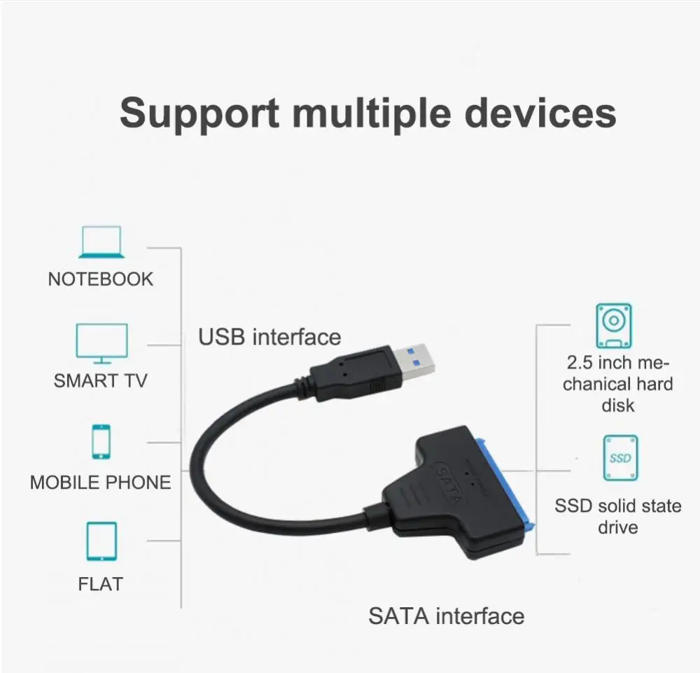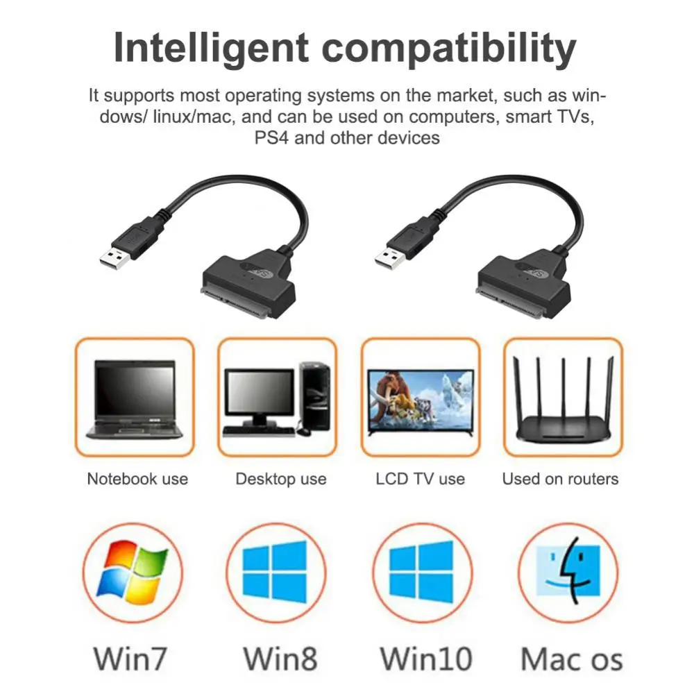 1. 어댑터 SATA III USB 2.0 3.0 케이블 외장 하드 드라이브 USB직렬 ATA 22핀 변환기 하드 디스크 6Gbps(2.5인치 HDD/SSD용).