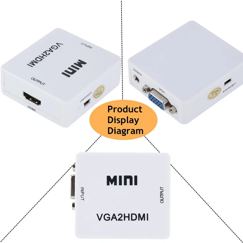 MNNWUU 1080P VGA 2 HDMI 오디오 노트북용 컨버터 VGAHDMI 미니 VGA2HDMI HDTV 커넥터 프로젝터용 PC 어댑