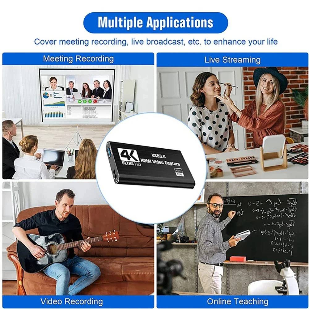 ? USB 3.0pc와 호환 가능:이 비디오 캡처 카드는 USB 3.0pc와 호환되어 원활한 비디오 스트리밍 및 녹화를 위해 빠르고 효율적인 데이터 전송을 보장합니다.