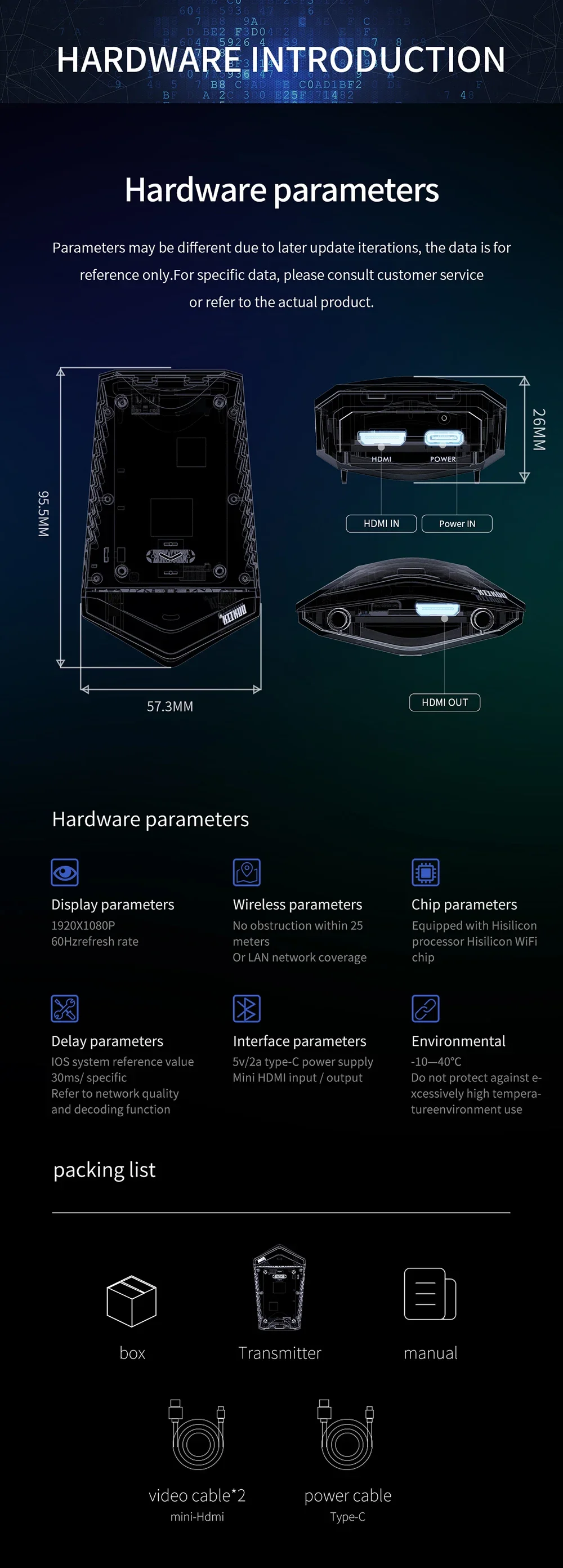 WiFi 전송 거리: 25 미터 이내 또는 저지연 지역 네트워크의 적용 범위 내에서 방해받지 않음