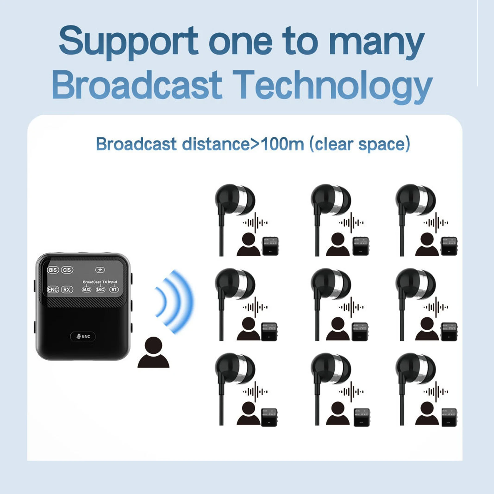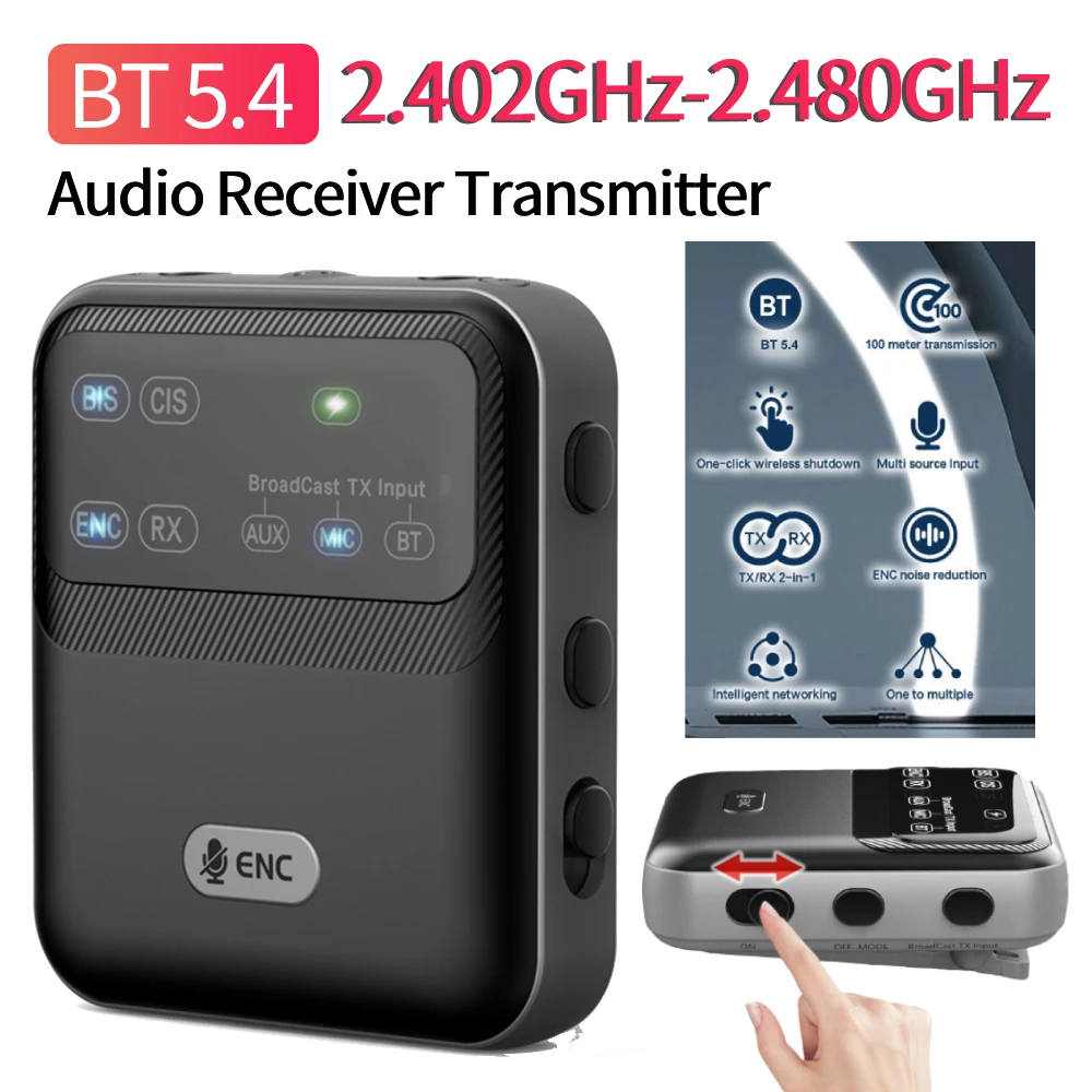 블루투스 5.4 무선 방송 송신기 (다중 오디오 시스템 지원), 오디오 수신기 송신기 ENC 무선 방송, 3.5mm 오디오 어댑터 (가정용 스테레오 음악 스트리밍용)