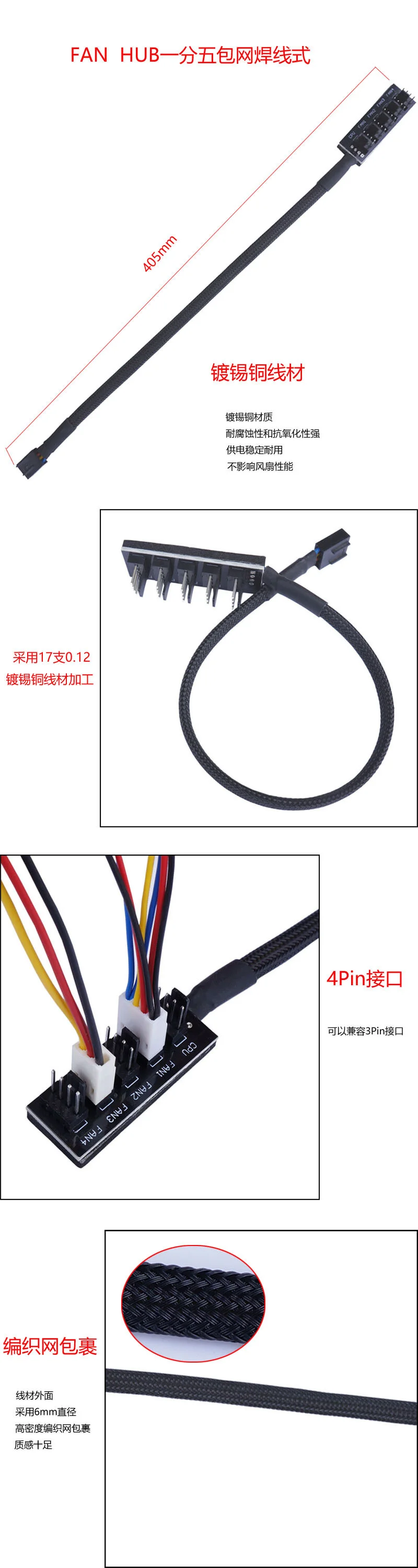 1: 5비트 팬의 3핀/4핀 인터페이스를 확장하여 마더보드 인터페이스와 중앙 집중식 팬 와이어 부족 문제를 해결합니다.