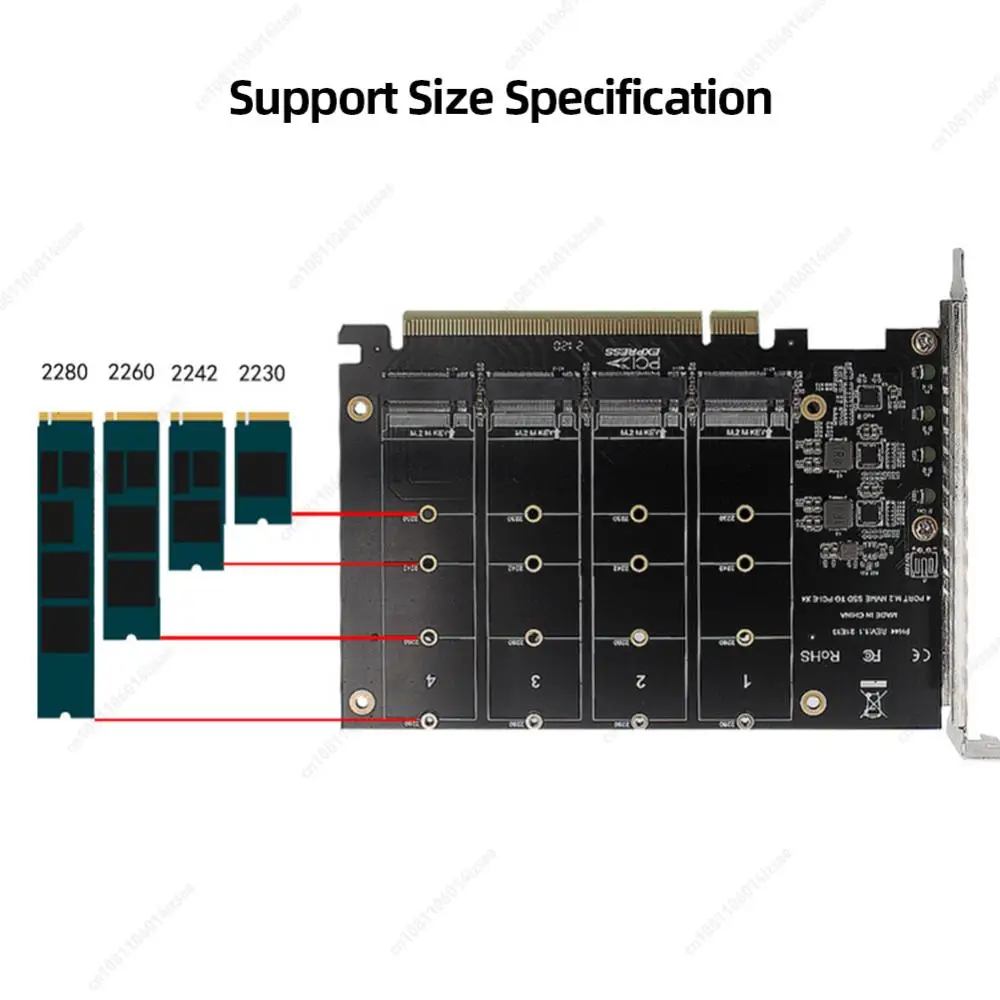 | PCIe 4.0 X16 Switch to 4 Ports M.2 Adapt | Quad NVMe PCIe Adapter |