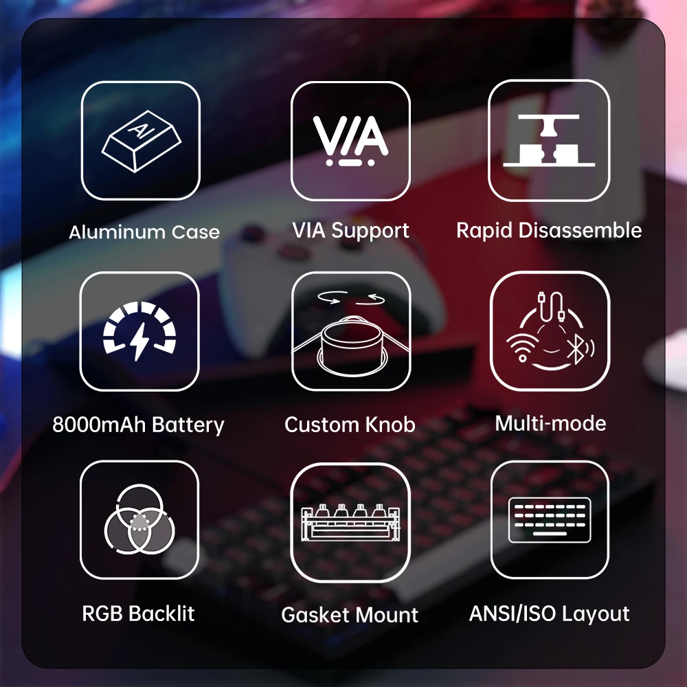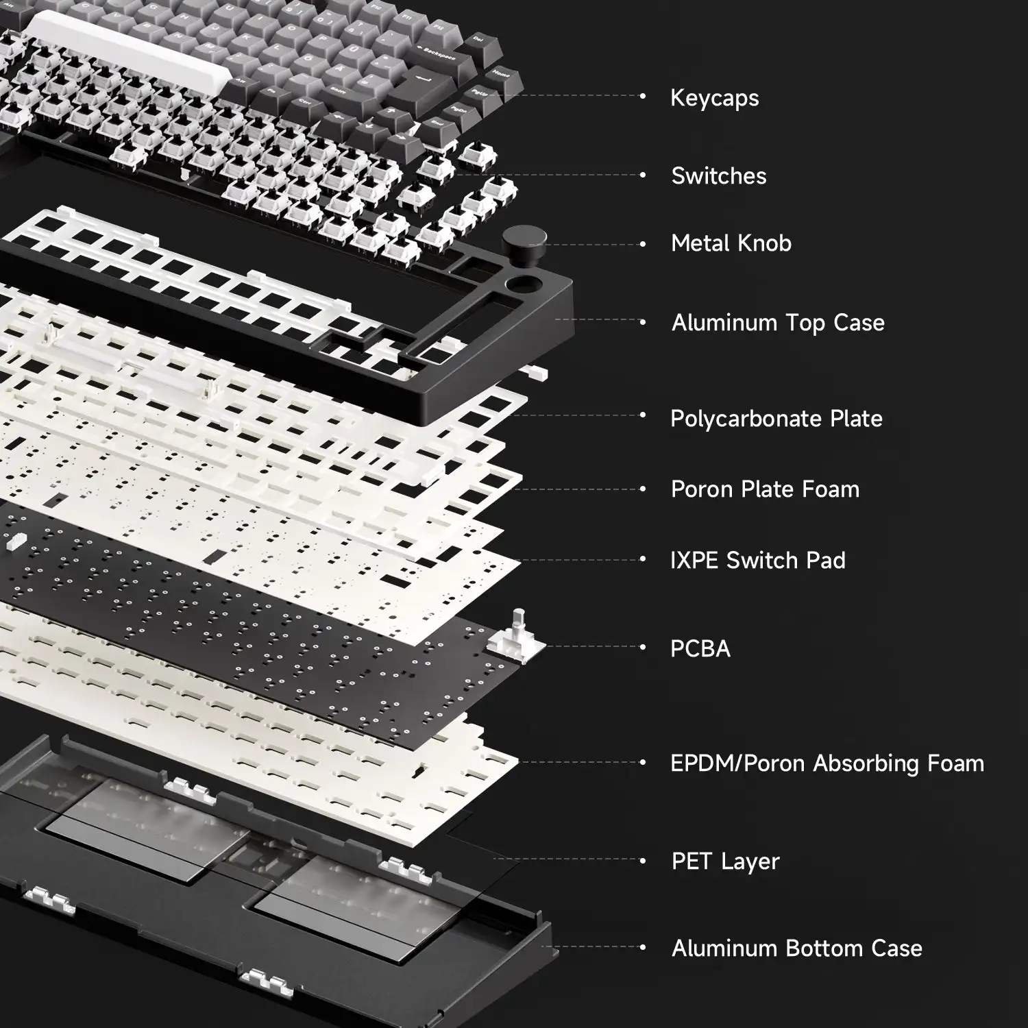 "MonsGeek 개스킷 마운트 키보드는 실리콘이나 네오프렌과 같은 개스킷 재료를 사용하여 스위치용 ""플로팅"" 마운트를 만드는 기계식 키보드 유형입니다."개스킷은 플레이트와 PCB 사이에 배치되어 보다 유연하고 쿠션감 있는 타이핑 경험을 제공합니다.