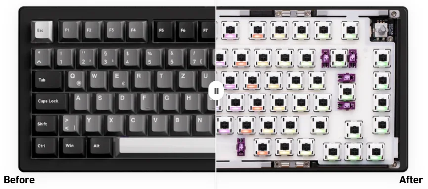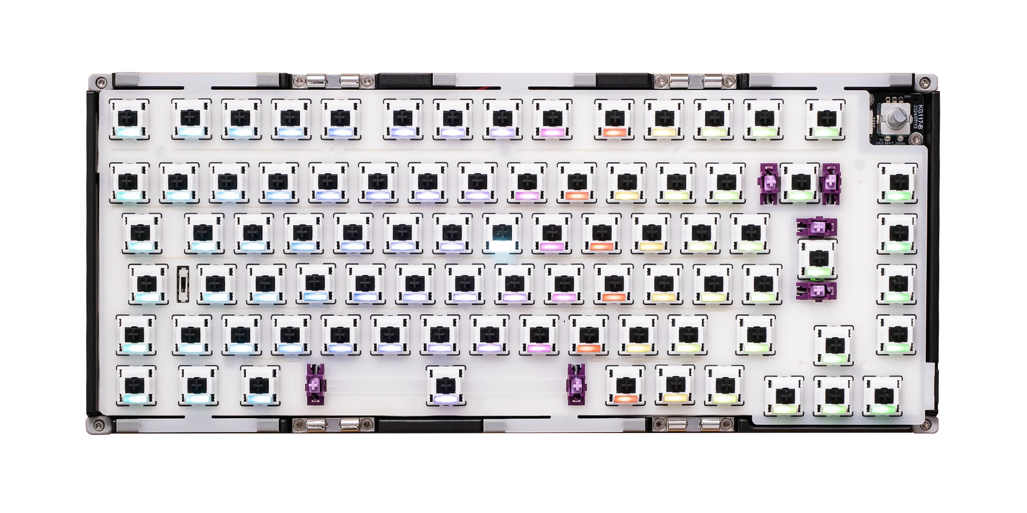 베어본에는 스위치와 키캡이 함께 제공되지 않습니다. 키캡과 스위치를 쇼핑하여 고유한 키보드를 만들 수 있습니다.