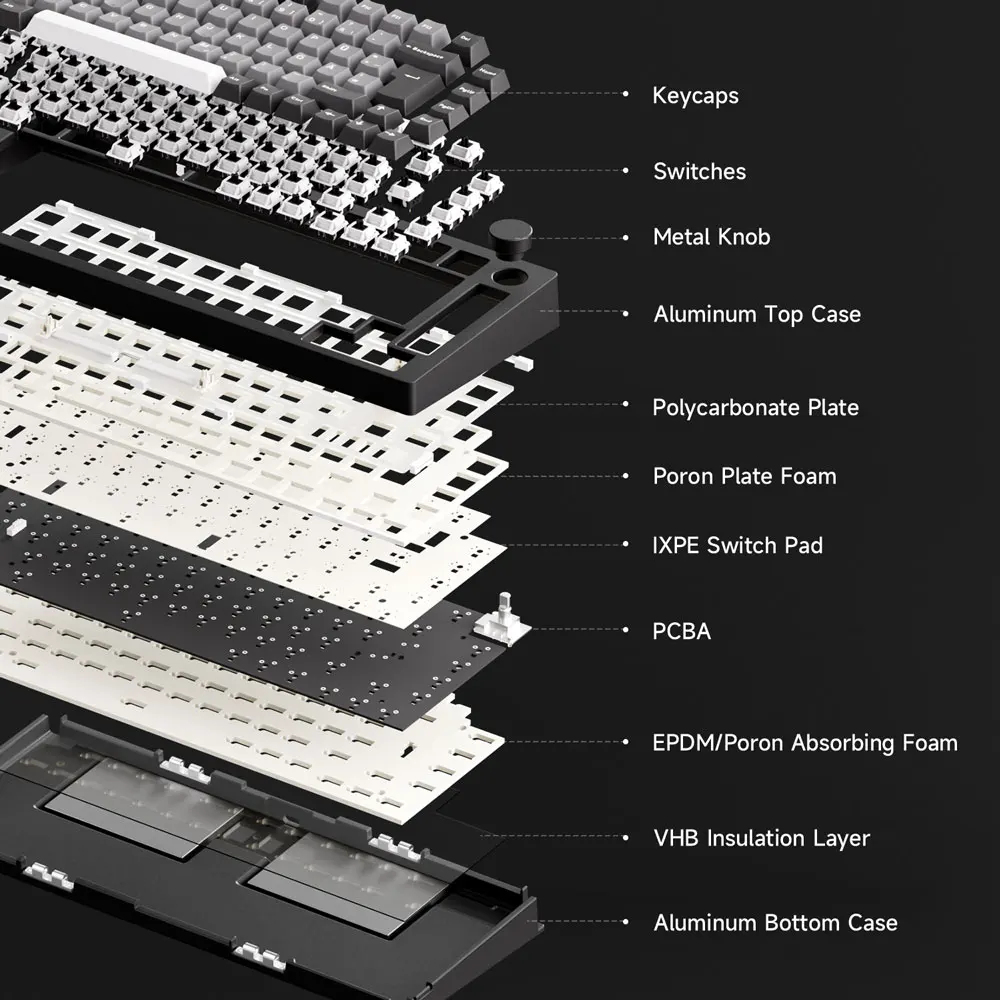 MonsGeek M1 V5 VIA 맞춤형 기계식 키보드에는 PORON 플레이트 폼이 장착되어 키 스위치에서 발생하는 소음을 효과적으로 줄여 키보드에 더 순수하고 편안한 촉각 사운드 경험을 보장합니다.
