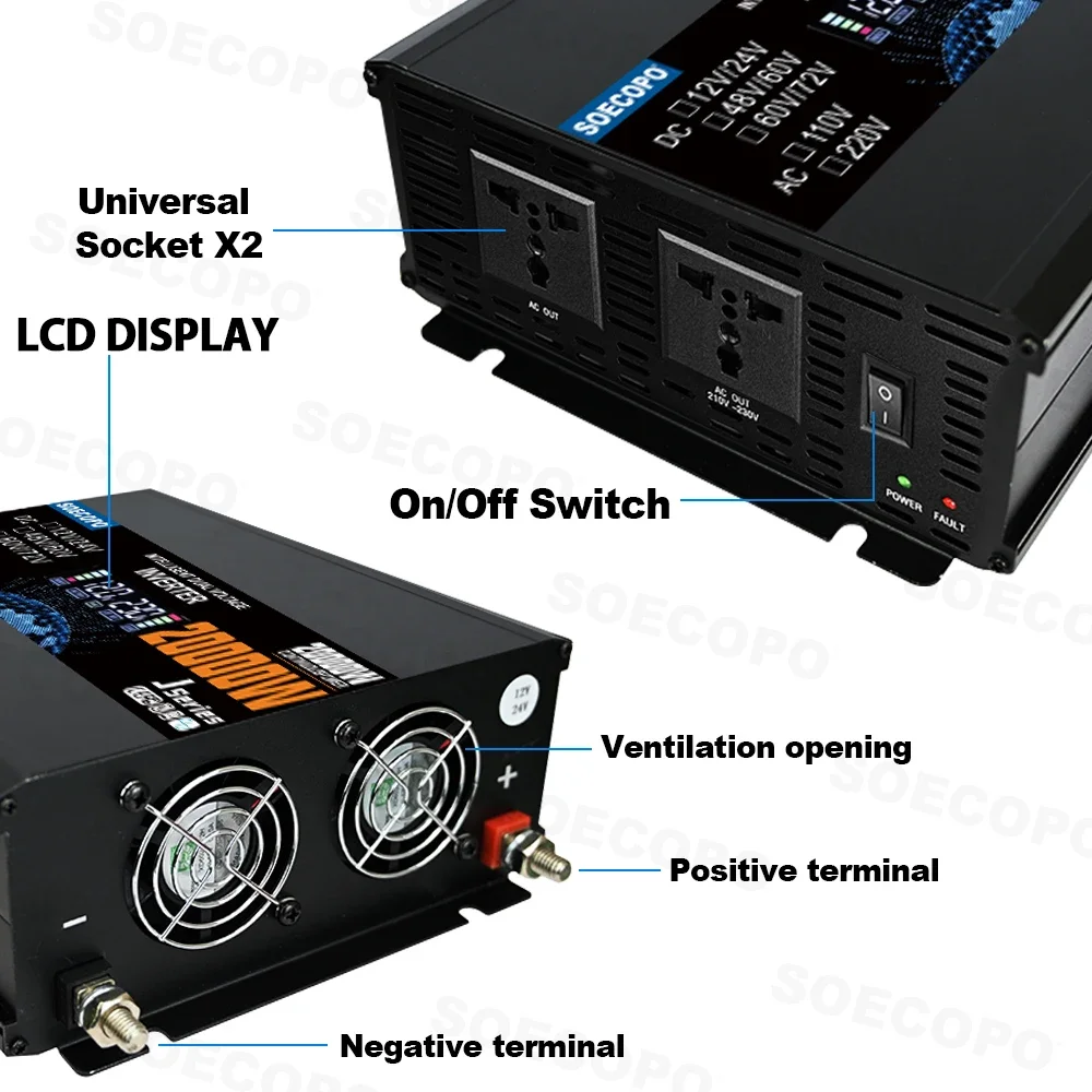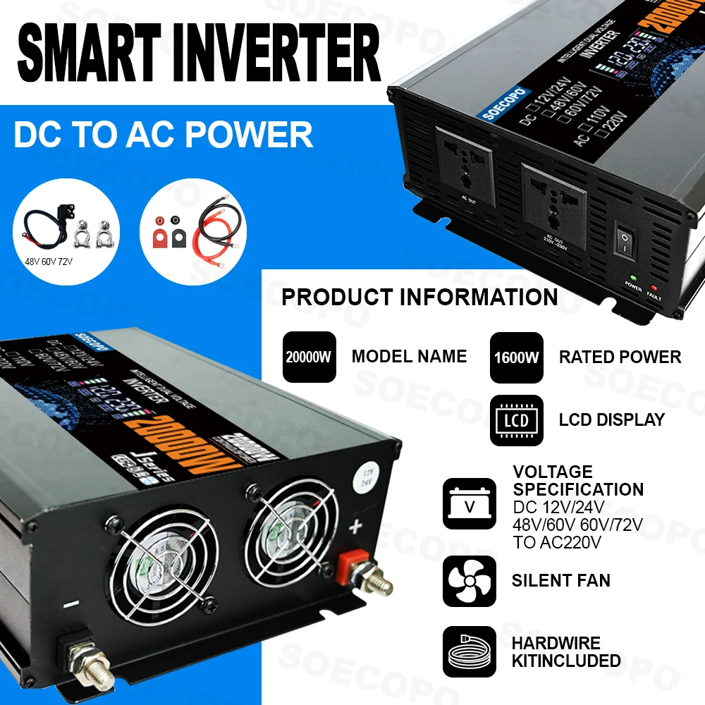 (20000W는 인버터의 피크 전력이며 총 부하는 1600W를 초과할 수 없습니다.)