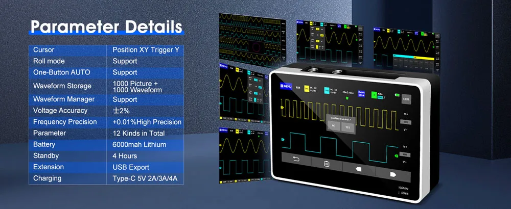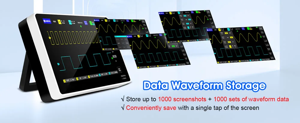 효율적인 원버튼 자동 장치를 갖추고 있습니다.원클릭 파형 저장 및 스크린샷.내장된 1GB 저장 공간은 최대 1000개의 스크린샷과 1000세트의 파형 데이터를 저장할 수 있습니다. 강력한 파형 사진 관리자는 썸네일 탐색, 보기, 자세히 보기, 페이지 넘기기, 삭제 및 파형 확대, 축소, 이동 등을 지원합니다.