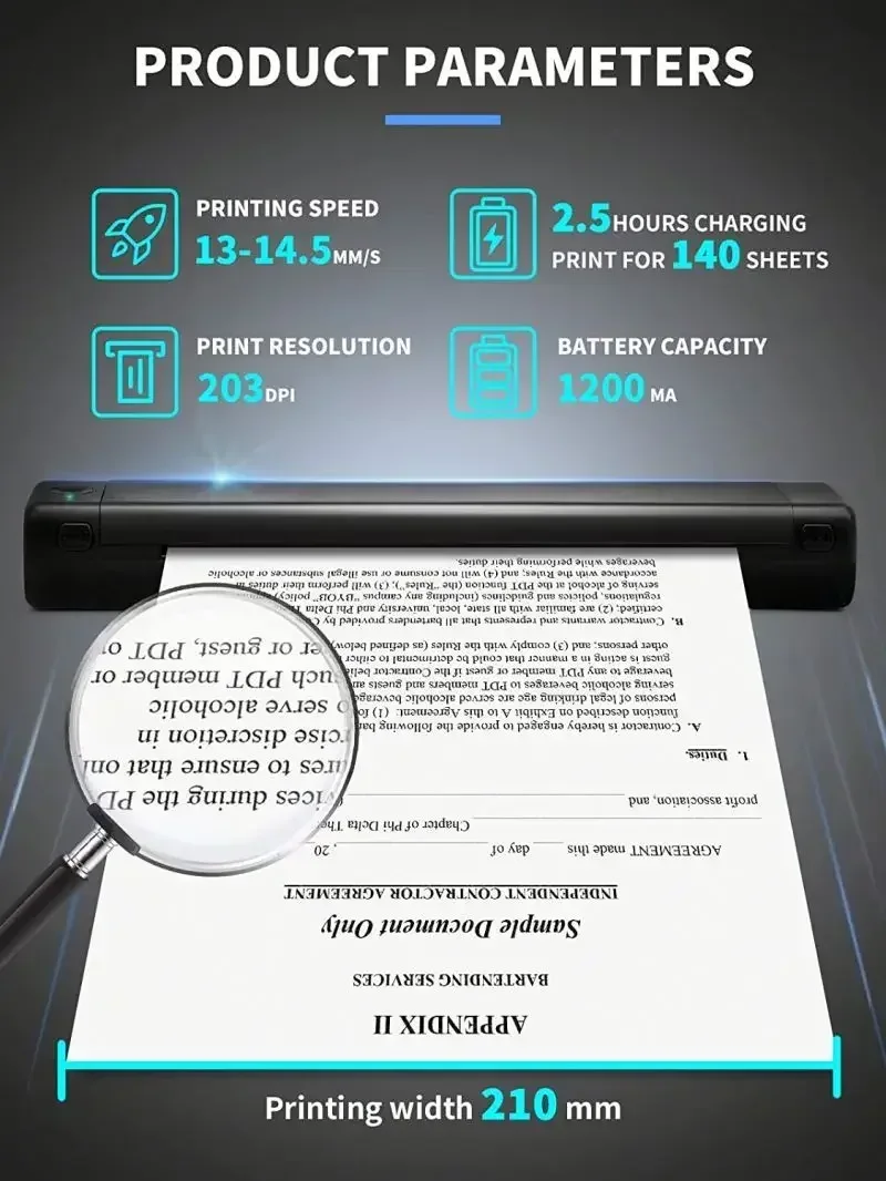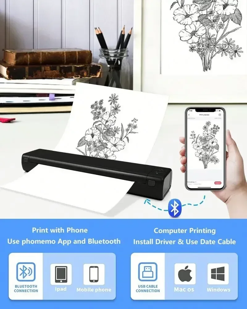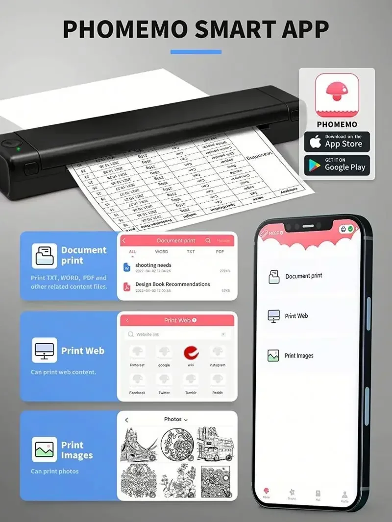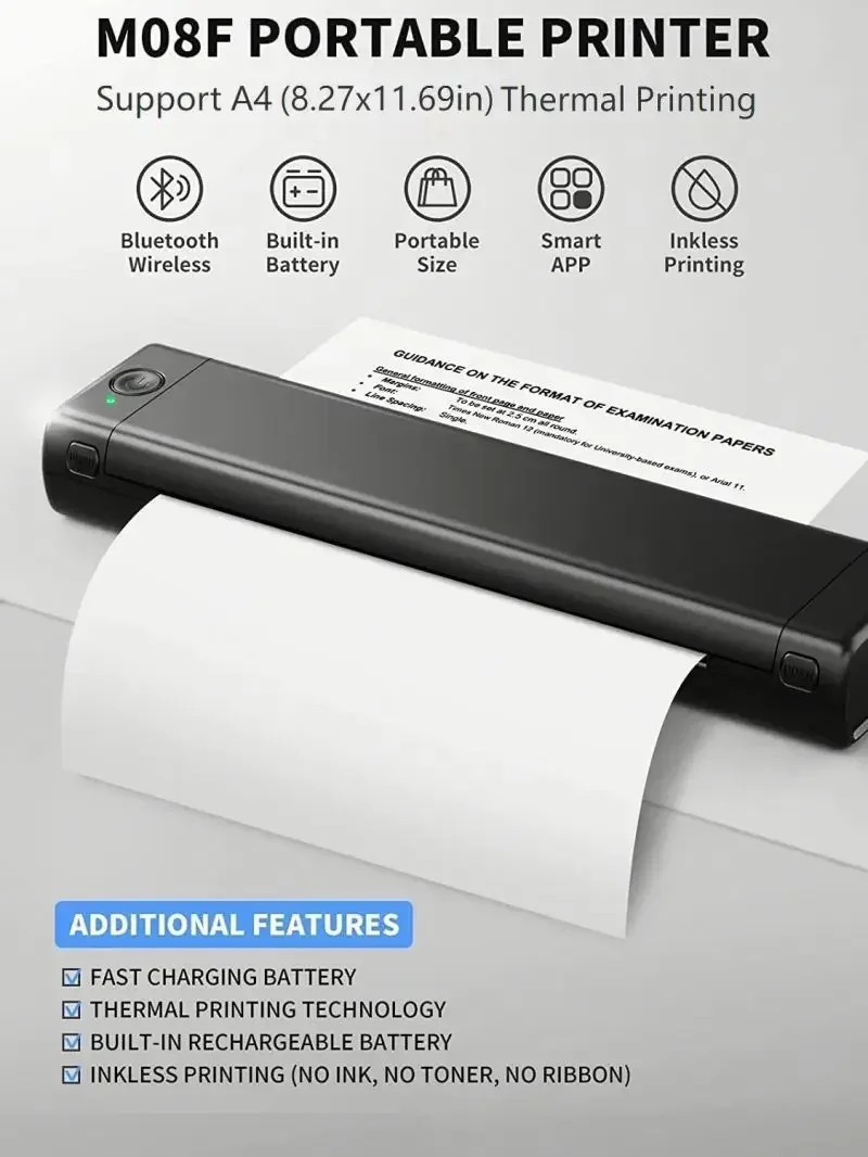 Phomemo M08F 소형 미니 숙제 용지 잉크가 필요 없는 사무실 휴대용 HD A4 프린터