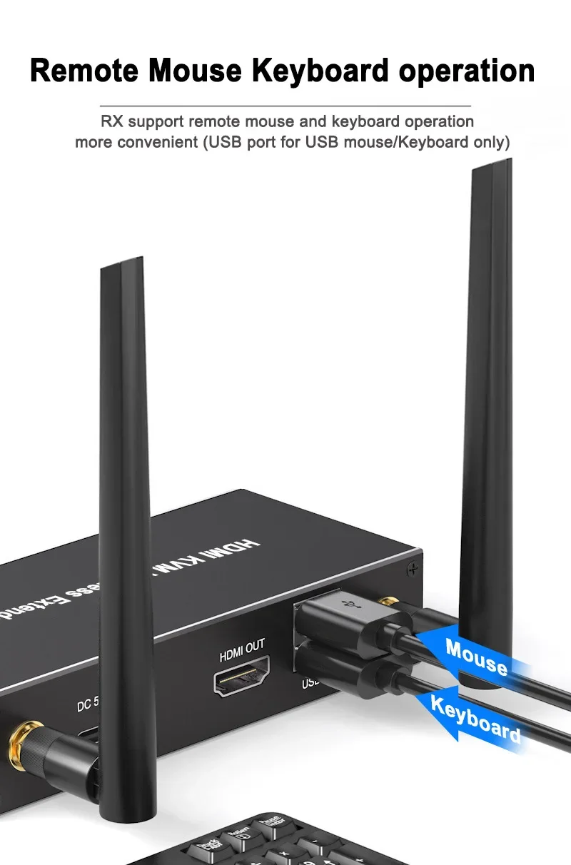 4K 루프 무선 HDMI 송수신기 USB KVM 연장기 카메라 200m TV 비디오 어댑터 PC에서 디스플레이 연결 프로젝