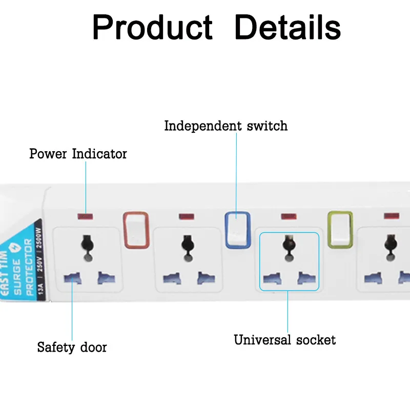 각 소켓에는 독립적인 스위치, 에너지 절약 및 안전 디자인이 있습니다;
