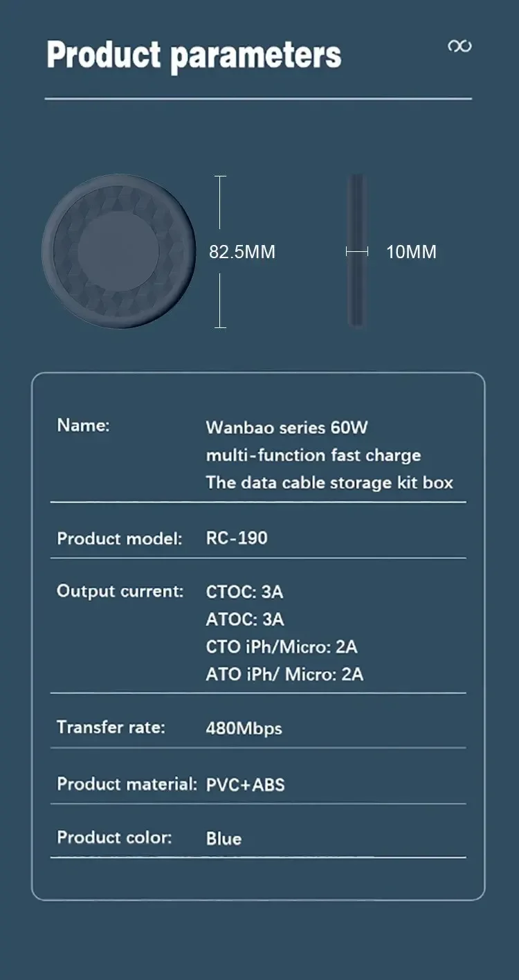 제품 이름: 60W 다기능 고속 충전 데이터 케이블 보관함