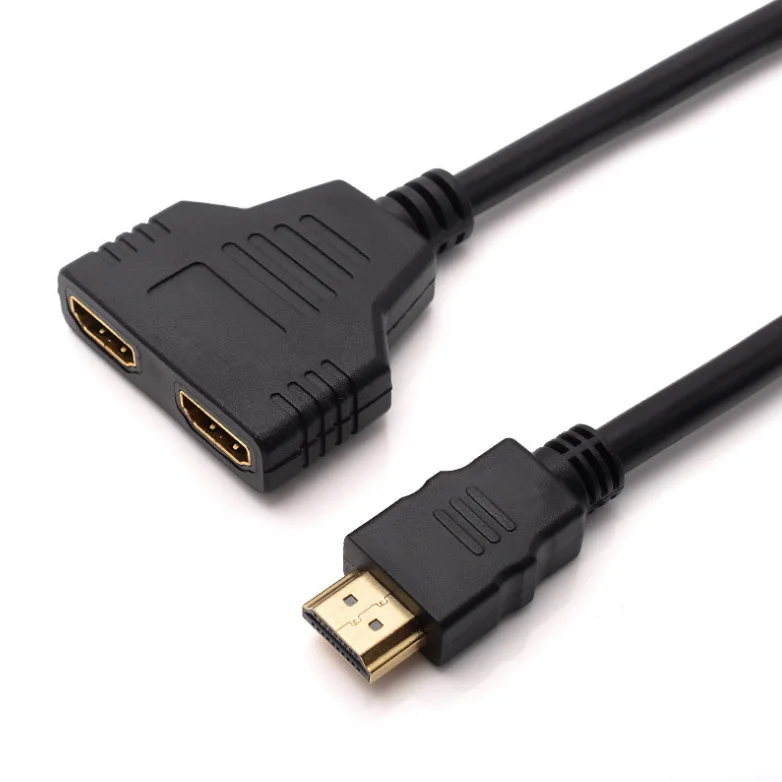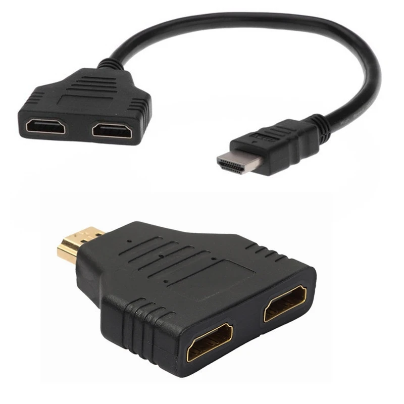 HDMI 남성 - 2개의 HDMI 여성 1 in 2 out 분배기 검정색 케이블 어댑터 변환기