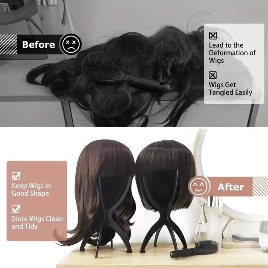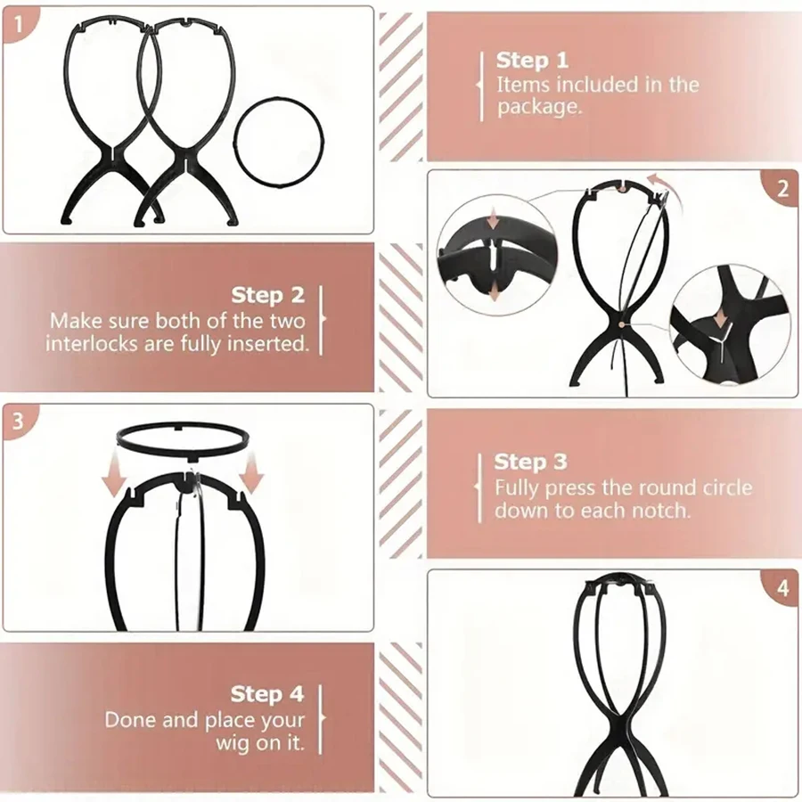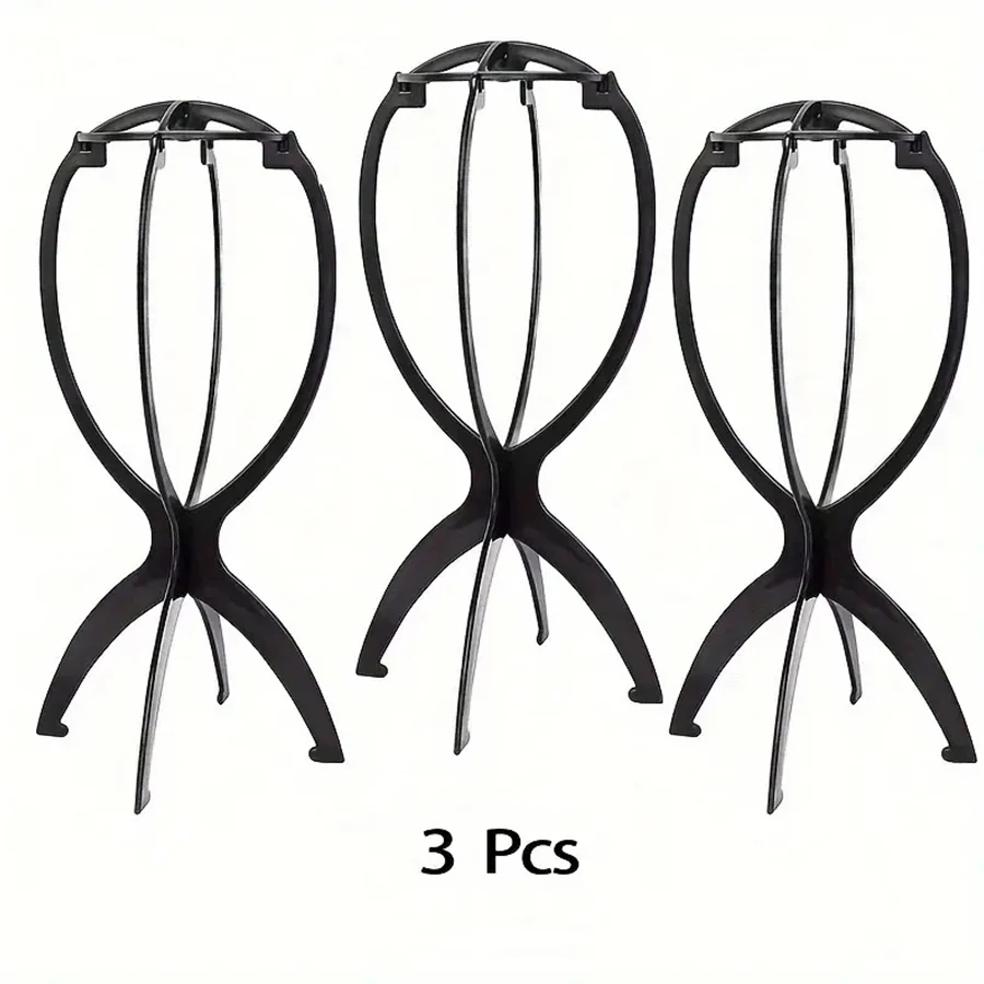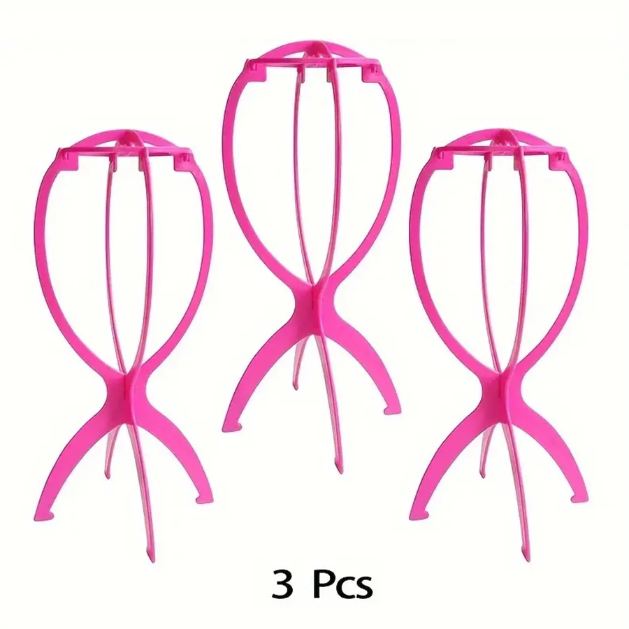 3 팩 13 8IN 여러 가발을 스탠드 블랙과 접이식 홀더 내구성 휴대용 가발 핑크