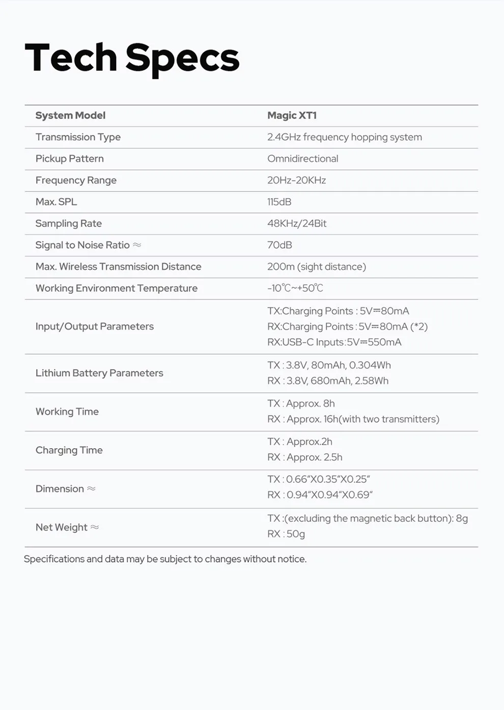 | 건전지 수용량 (mAh) | TX:3.8V 80mAh,0.304Wh RX:3.8V,680mAh,2.58wh |