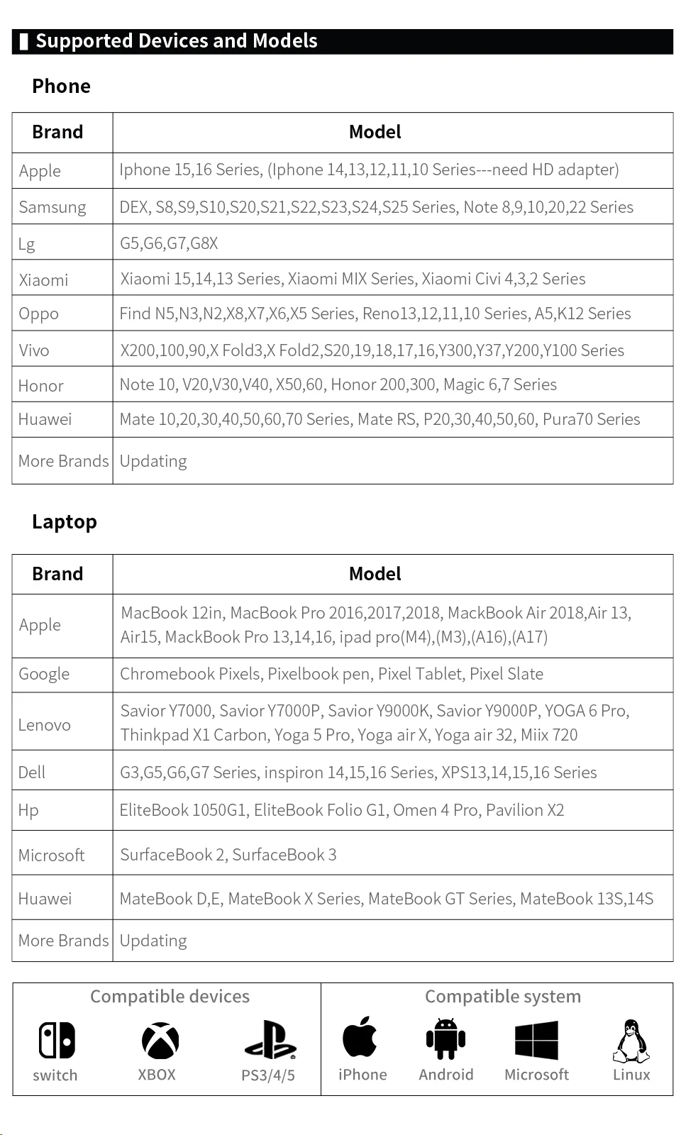 유형 C 3.1 1920*1080P@120Hz/ HDMI 1.4 1920*1080P@120hz |