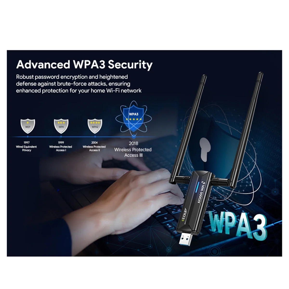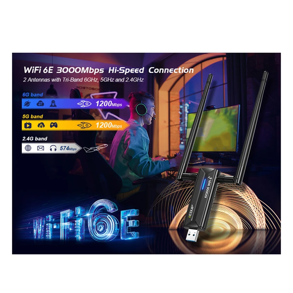 AX1672 WiFi 6E 어댑터 3000Mbps 고속 USB 3 0 4G/5G/6G 카드 네트워크 포함 무선 안테나 밴드 트라이