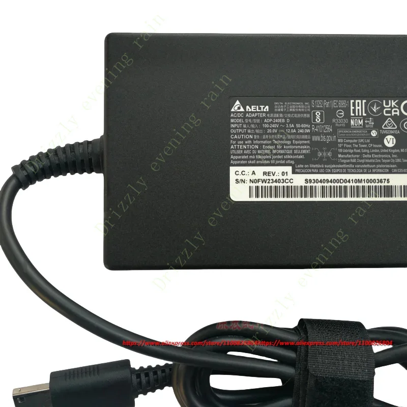 MSI 게이밍 노트북 gp76 ge66 ADP240EB D 오리지널 240W DELTA 20V 12A AC 어댑터 충전기 GP66 POWER LOGIC 공급 장치 사각형 팁