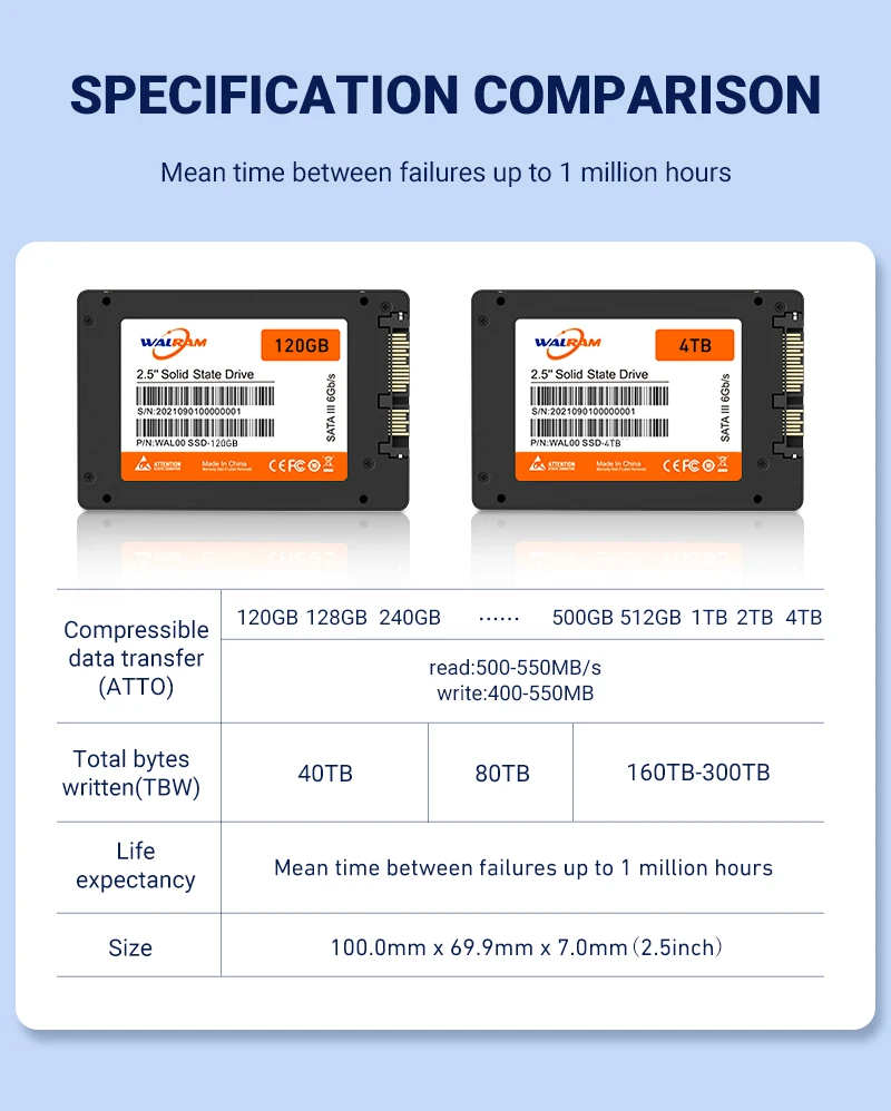 ※ 읽기 속도(MAX): 550MB/S; 쓰기 속도(최대): 500MB/S.