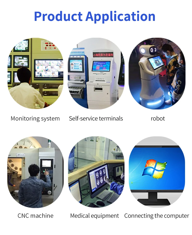 Cctv 모니터, 의료 모니터, 보안 모니터, 산업용 터치 모니터 PC, 로봇 모니터, cnc 모니터 및 광학 산업, 의료 산업, 보안 산업, 비디오 산업, 사진, 교육 및 훈련, 제품 마케팅, 군사 산업, 전자 제조, 산업 제조 등.