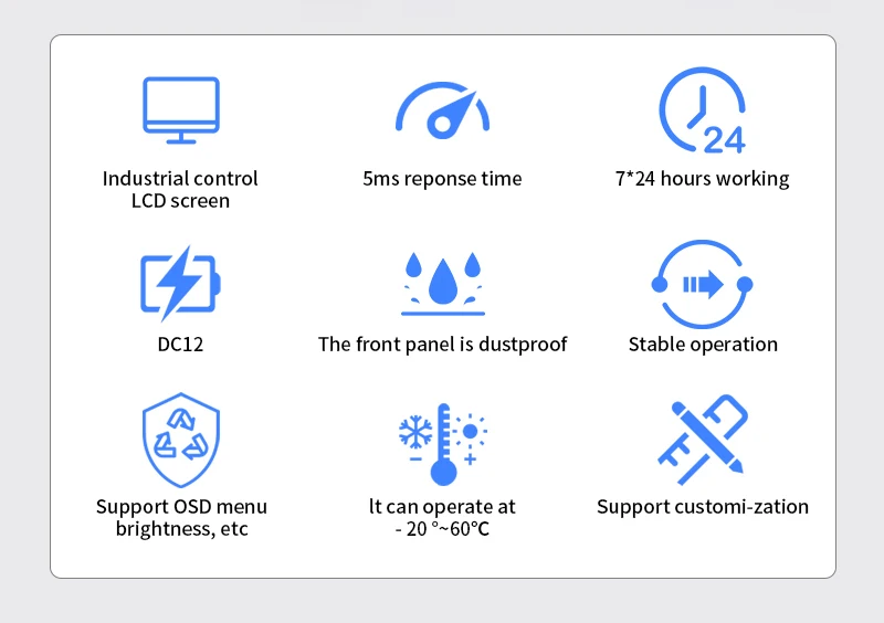 정확한 터치로 빠른 응답: Resisitiv/정전식 터치 시간> 3500 만 회, 백라이트 수명 3000050000h