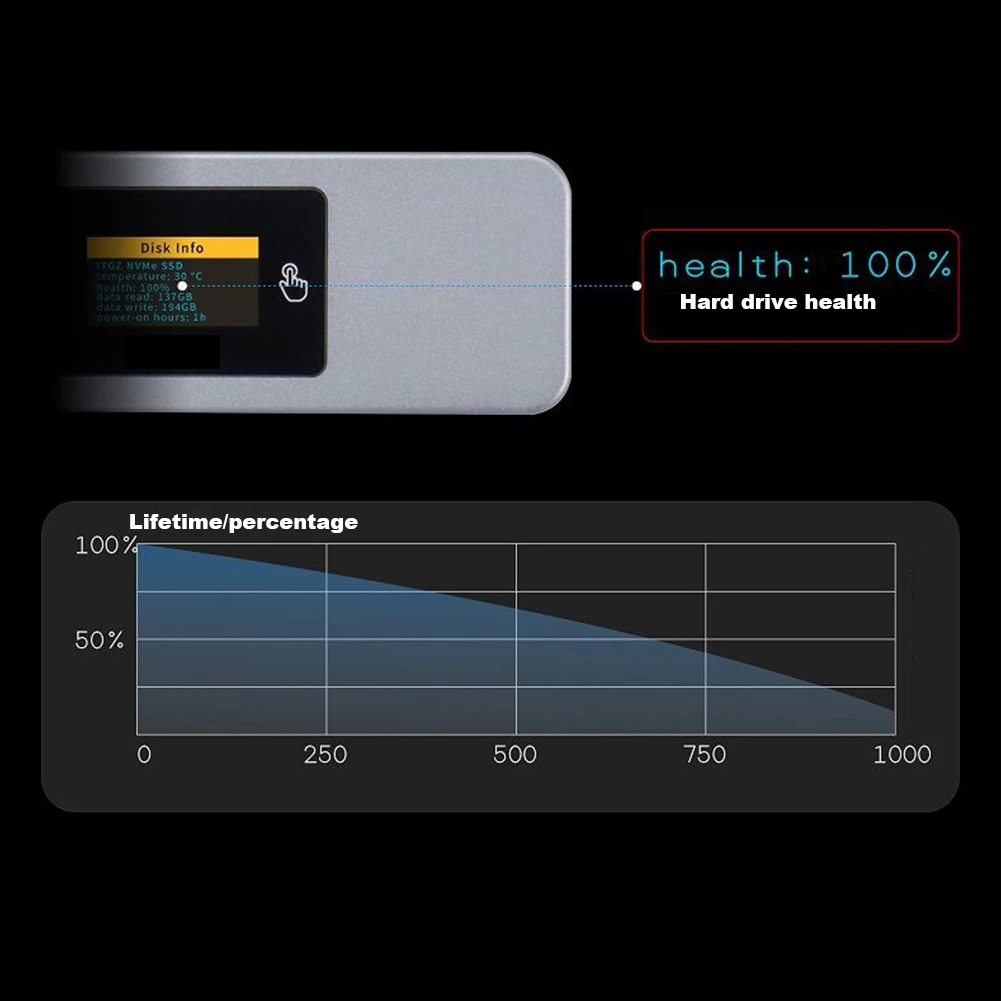 M.2 NVMe NGFF 외장 하드 드라이브 케이스 10Gbps 하드 드라이브 인클로저 M 키 SSD HDD 하드 디스크 박스(디스플레이 화면 포함) 노트북용 USB3.2 Gen2 특징: 1.선제 데이터 보존 경고:드라이브의 사전 예방적 상태 모니터링 시스템을 통해 예상치 못한 데이터 손실에 대해 다시는 걱정하지 마세요.외장 하드 드라이브 케이스는 하드 드라이브의 수명을 지속적으로 확인하고 표시하여 적시에 데이터를 백업하여 잠재적인 드라이브 오작동으로부터 귀중한 정보를 보호하고 마음의 평화와 데이터 안전을 보장합니다. 2.프리미엄 양극 산화 알루미늄 케이스:당사의 하드 드라이브 인클로저는 최고 품질의 양극 처리된 알루미늄 합금 쉘로 포장되어 있어 물리적 충격으로부터 탁월한 보호 기능을 제공할 뿐만 아니라 시원하고 둥근 마감 처리로 세련되고 현대적인 외관을 자랑합니다.이 고급 케이스는 내구성과 패셔너블한 미학을 결합하여 기술 애호가에게 꼭 필요한 제품입니다. 3.우수한 RTL9210B 제어 칩:빠르고 안정적이며 효율적인 성능을 제공하는 최신 RTL9210B 제어 칩으로 데이터 전송 게임의 수준을 높이십시오.이 고급 칩은 안정성과 호환성 측면에서 이전 칩보다 훨씬 뛰어난 성능을 발휘하는 동시에 과열을 줄여 드라이브의 수명과 신뢰성을 보존합니다. 4.엄청나게 빠른 데이터 전송:M.2~TypeC 3.1 Gen2 인터페이스에 대한 지원을 통해 이론적인 전송 속도를 최대 10Gbps까지 높여 작업 성능을 향상시킵니다.실제 테스트에서는 1000MB/S 이상의 놀라운 읽기 및 쓰기 속도가 나타나 작업을 경주하는 것과 같은 매우 빠른 데이터 처리 경험을 제공합니다. 5.범용 플러그 앤 플레이 호환성: O드라이브 건강 시스템은 Windows, 또는 Linux 운영 체제에 대한 추가 드라이버가 필요하지 않고 다양한 플랫폼에서 번거로움 없이 사용할 수 있도록 지능적으로 설계되었습니다.이러한 스마트한 드라이버 없는 호환성은 원활하고 사용자 친화적인 경험을 보장하여 다양한 컴퓨팅 환경에서 드라이브를 쉽게 연결하고 사용할 수 있도록 해줍니다. 사양: 원산지: 중국 본토 호환 브랜드/모델: 없음 유형: NVME 프로토콜, 듀얼 프로토콜(옵션) 색상: 스페이스 그레이 NVME 프로토콜: NVMe 듀얼 프로토콜: NVMe/NGFF 모델: ITH80U057 전송 속도: 10Gbps 내부 인터페이스: M.2 M 키 USB 사양: USB3.2 gen2 쉘 재질: 알루미늄 합금 제품 크기: 103.00x33.00x11.60mm 제품 크기: 4.06x1.3x0.46inch 메모: