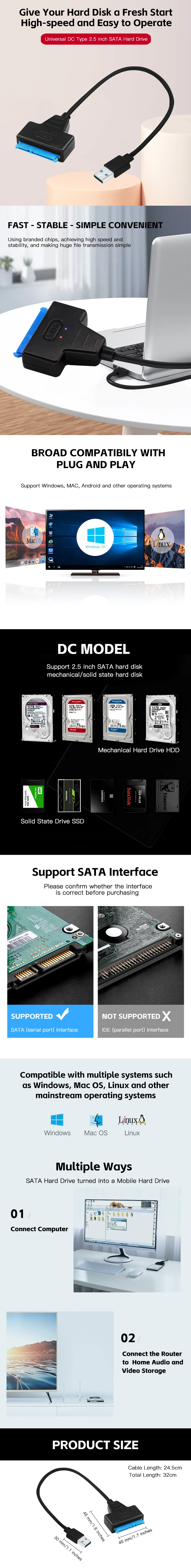 ? USB 3.0SATA 케이블:더 빠른 데이터 전송 속도를 위해 USB 3.0 기술을 사용하여 외장 하드 드라이브나 SSD를 컴퓨터에 연결하세요.