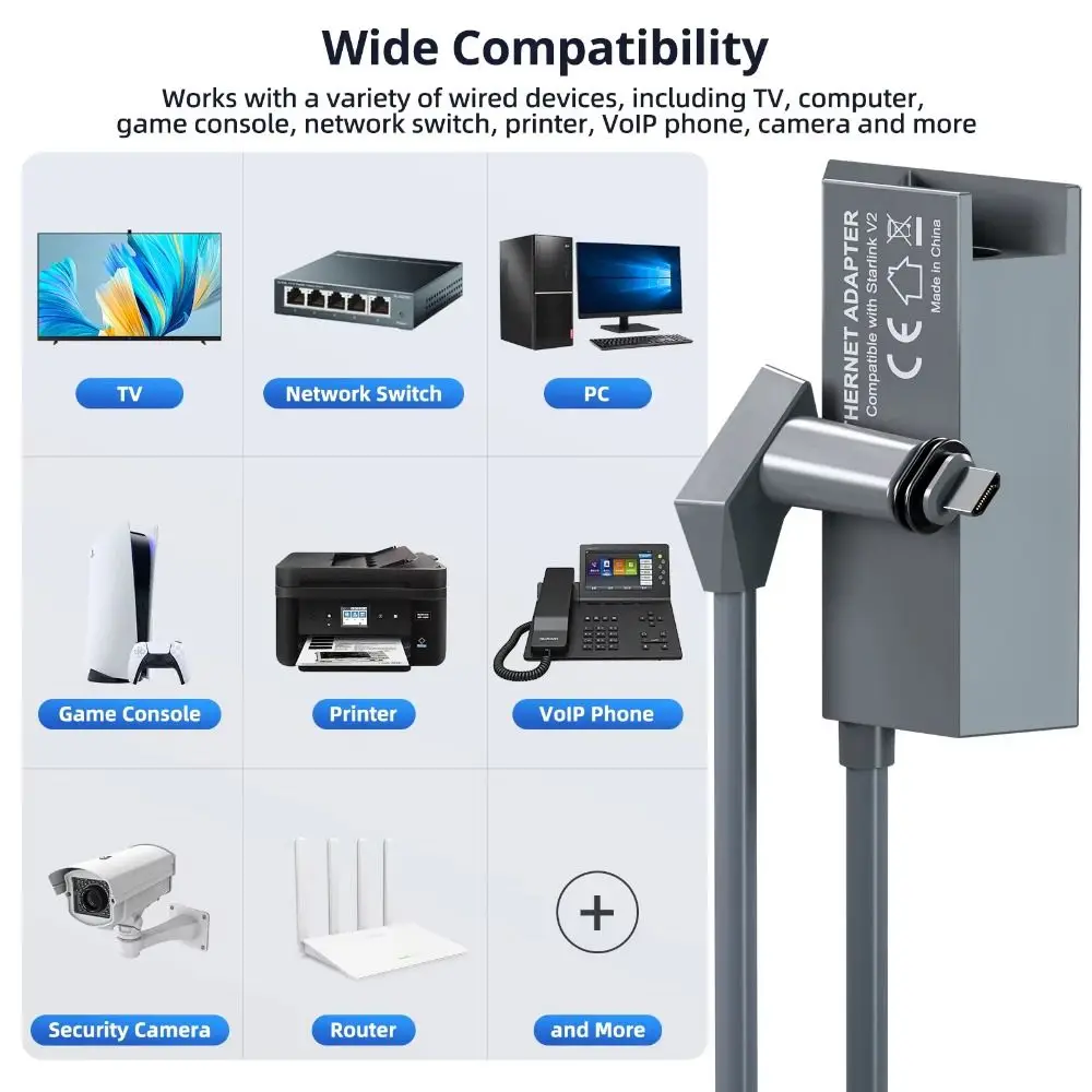 4.편리한 설정: 이더넷 어댑터, 플러그 앤 플레이를 사용하여 인터넷 위성에 쉽게 연결하여 생활에 큰 편리함을 제공합니다.