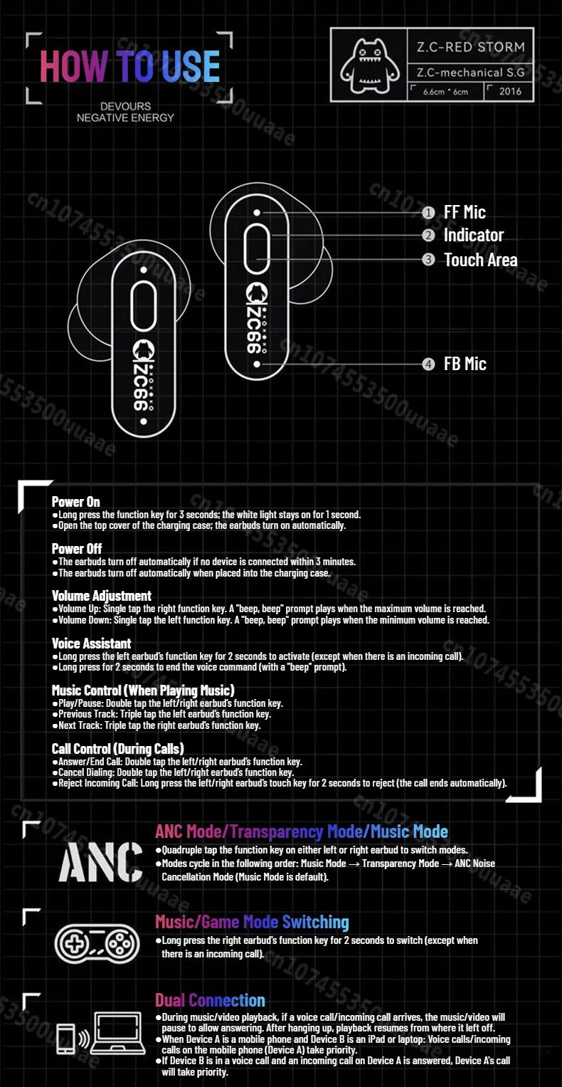 ① ANC 모드(ANC ON): 이 모드에서는 이어버드가 심층 활성 소음 감소에 들어가 강한 저주파 소음을 효과적으로 감쇠하므로 지하철이나 버스와 같이 시끄러운 장소에서 이 모드를 켜는 데 이상적입니다.