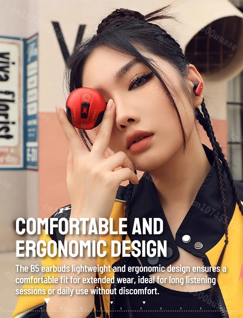 B5 이어버드는 가볍고 인체공학적인 디자인으로 장시간 착용에도 편안한 착용감을 제공하여 장시간 청취 세션이나 불편함 없이 매일 사용하기에 이상적입니다.