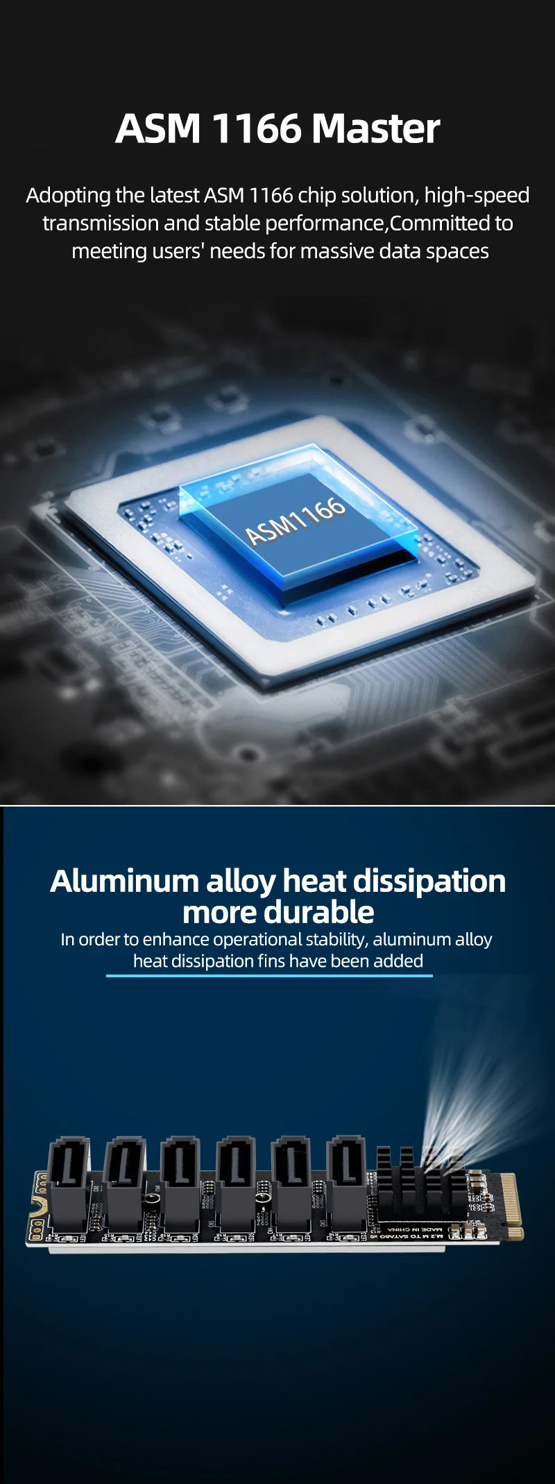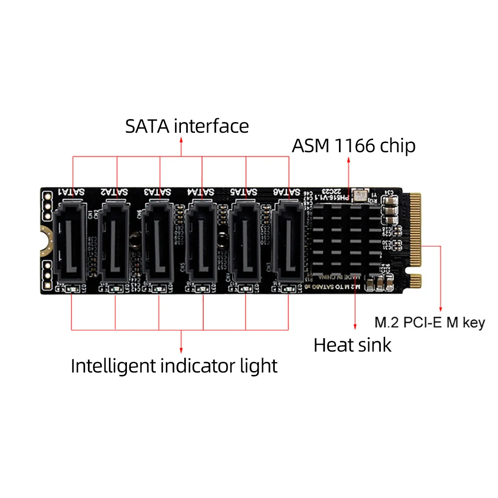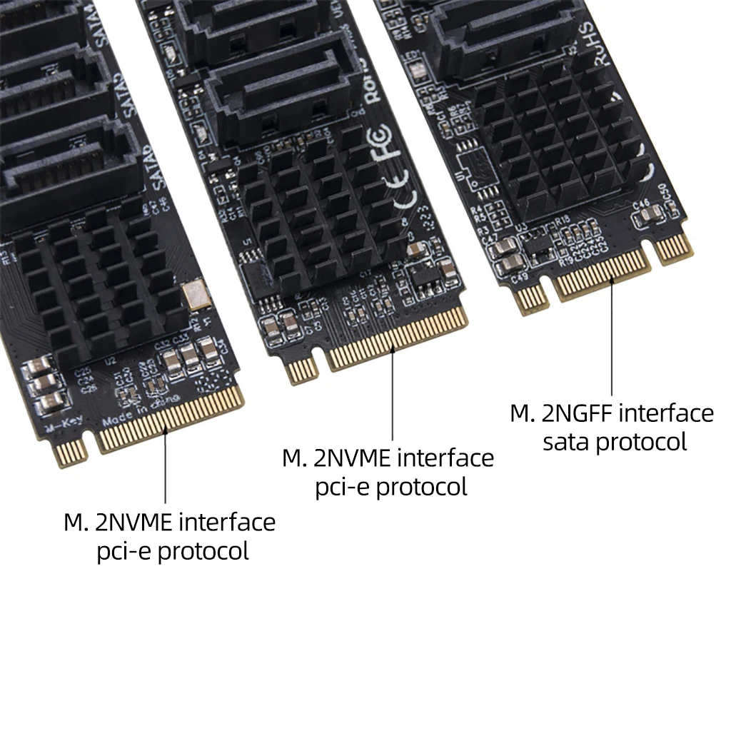 M.2SATA 3.0 라이저 카드 M2 MKEY PCIE 확장 카드 5/6 포트 SATA3.0 6Gbps 변환기 NVME NGFFSATA SSD 어댑터 카드