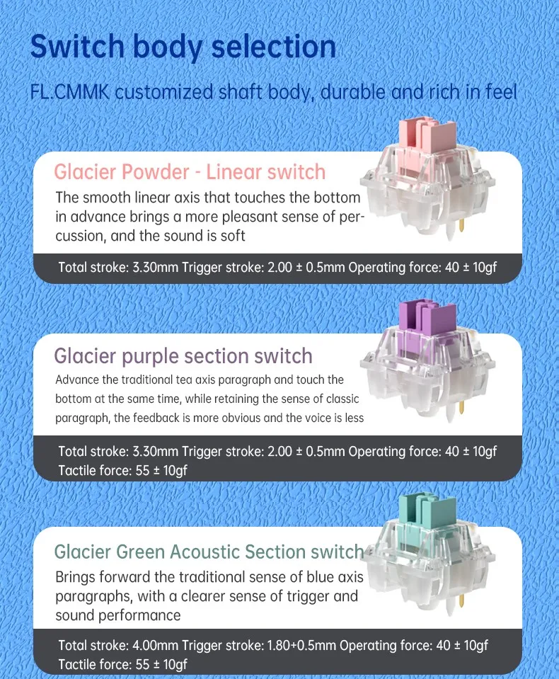 단락 스위치: 트리거 느낌 유지 클래식 단락 스위치의 피드백이 더 분명하고 사운드가 더 조용합니다.
