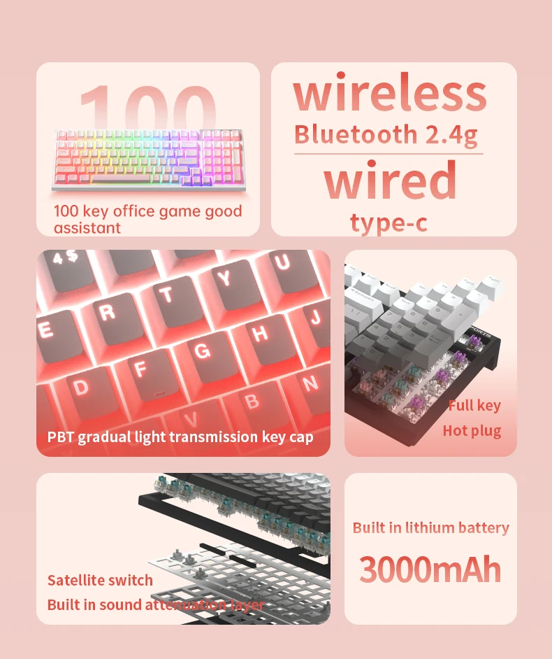클래식 디자인/PBT 점진적 키 캡/3 모드 기계식 키보드/풀 키 핫 스왑