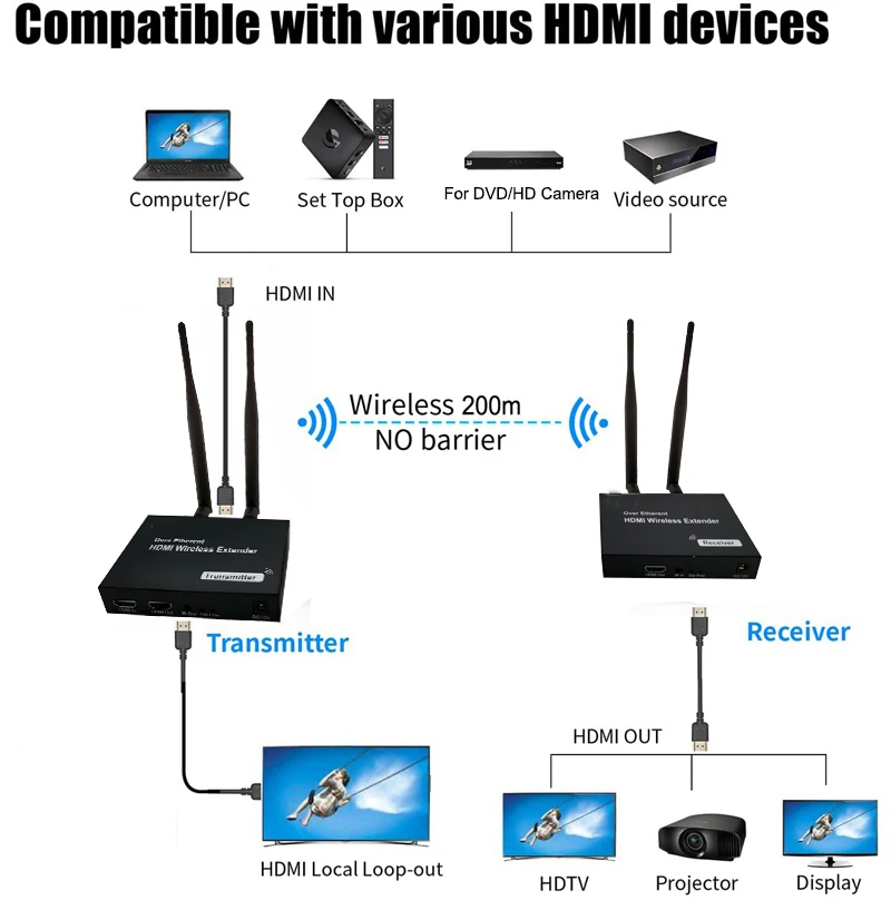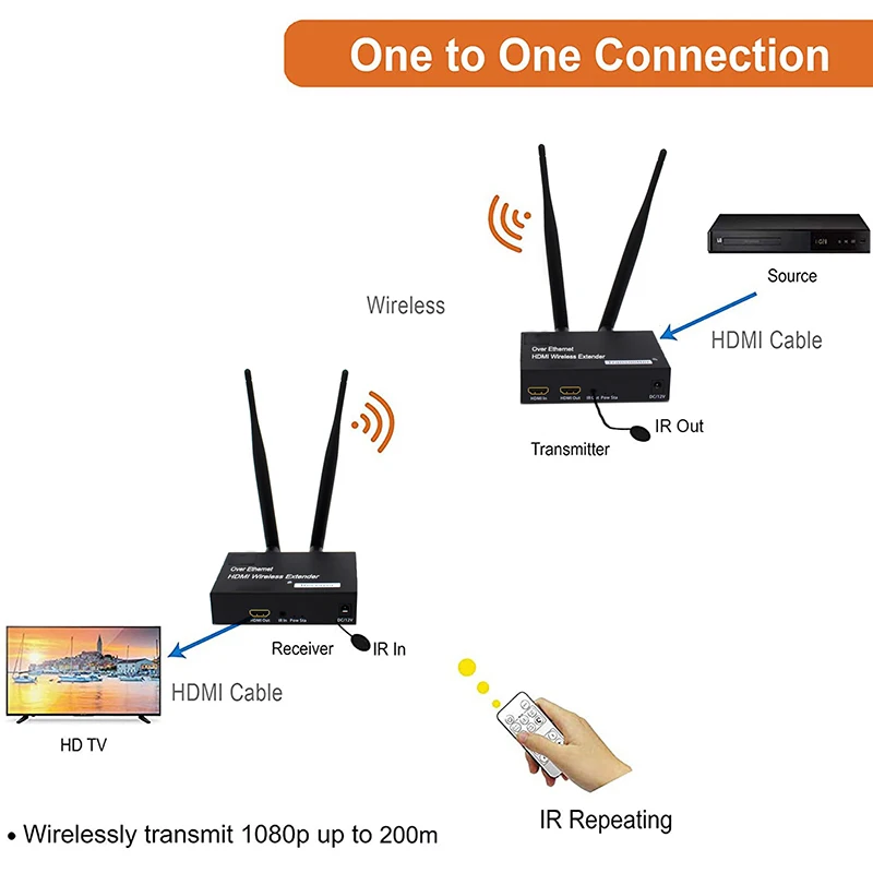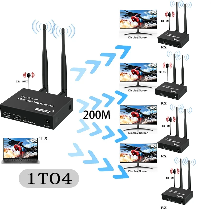 무선 WIFI를 통한 HDMI 신호 전송, 최대 200M