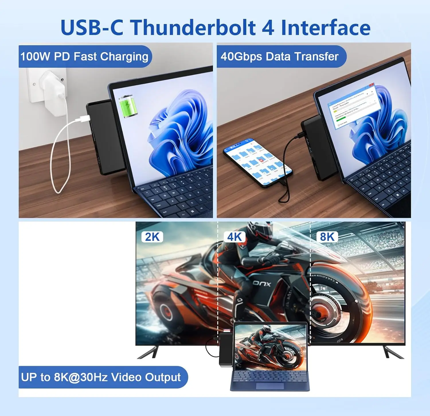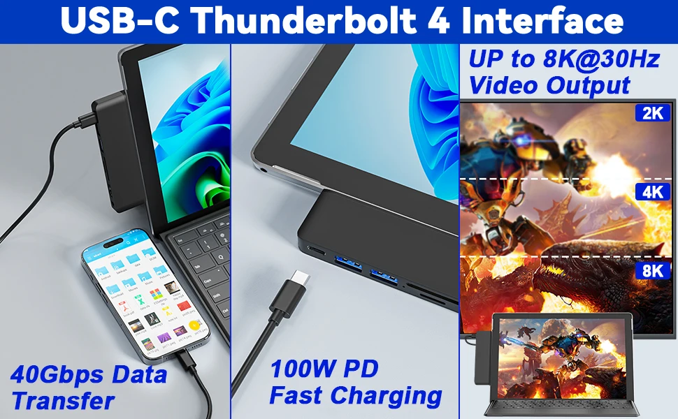 USB C Thunderbolt 4 포트를 사용하면 최대 40Gbps의 속도로 데이터를 전송하여 파일, 음악, 비디오를 몇 초 만에 업로드 및 다운로드할 수 있습니다.이는 대용량 데이터를 자주 전송하는 사용자에게 유용합니다.