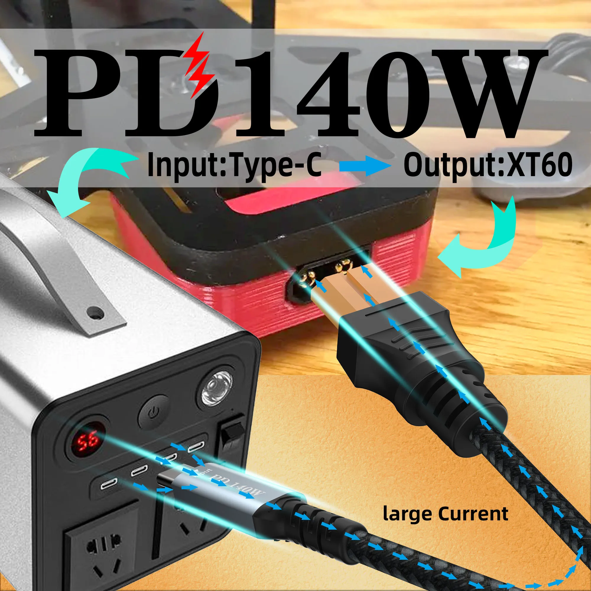 XT60 female to USB C male charging cable supports up to 140W power cable, suitable for drones, solar cells, etc., used for tool kit M7 M6 M6D M8S chargerSpecifications:Connector 1: XT60 (female)Connector 2: Ctype (male)Temperature range: -10 ° C to+40 ° CCable length: 3.3 feetPacking list: 3.3foot Ctype to XT60 charging cable (1 pack)