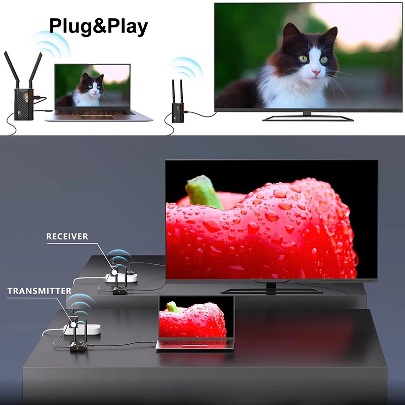 Full HD 1080P 무선 전송을 지원합니다.드라이버나 앱을 설치할 필요도 없고, 추가 WiFi도 필요하지 않습니다.