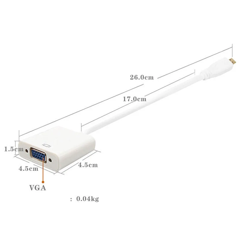 커넥터: 미니 HDMI 남성에서 VGA HD15 여성으로.