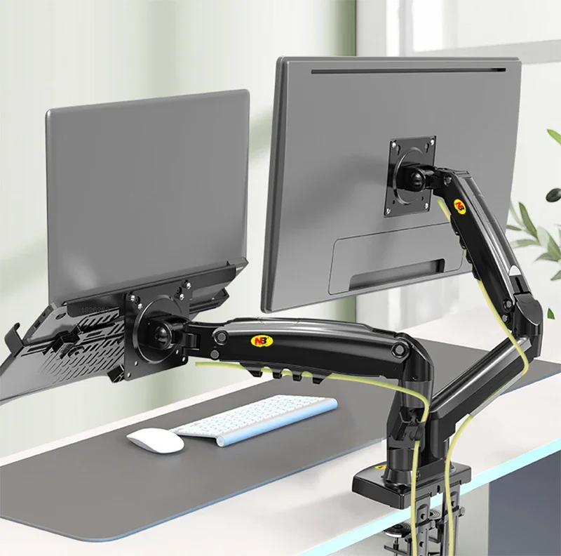17~27인치 모니터 + 10~17인치 노트북용 360도 가스 스프링 데스크탑 듀얼 암