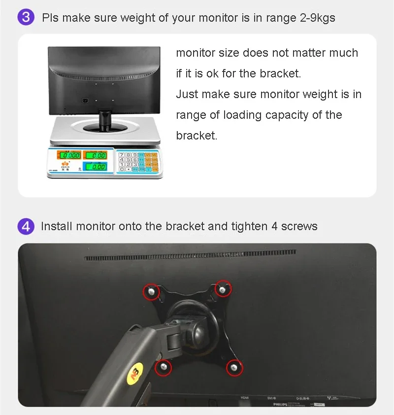 ■ 4.4~19.8lbs(2~9kg)X2의 하중을 지원합니다.