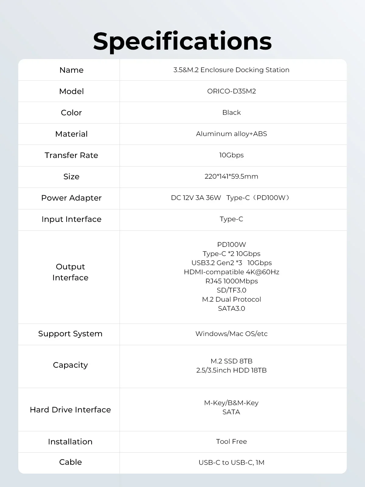 | 모델 번호 | ORICO D35M2 |