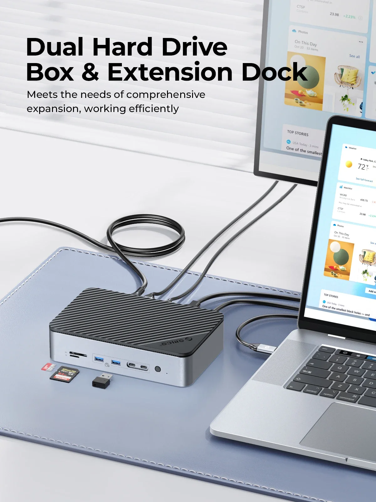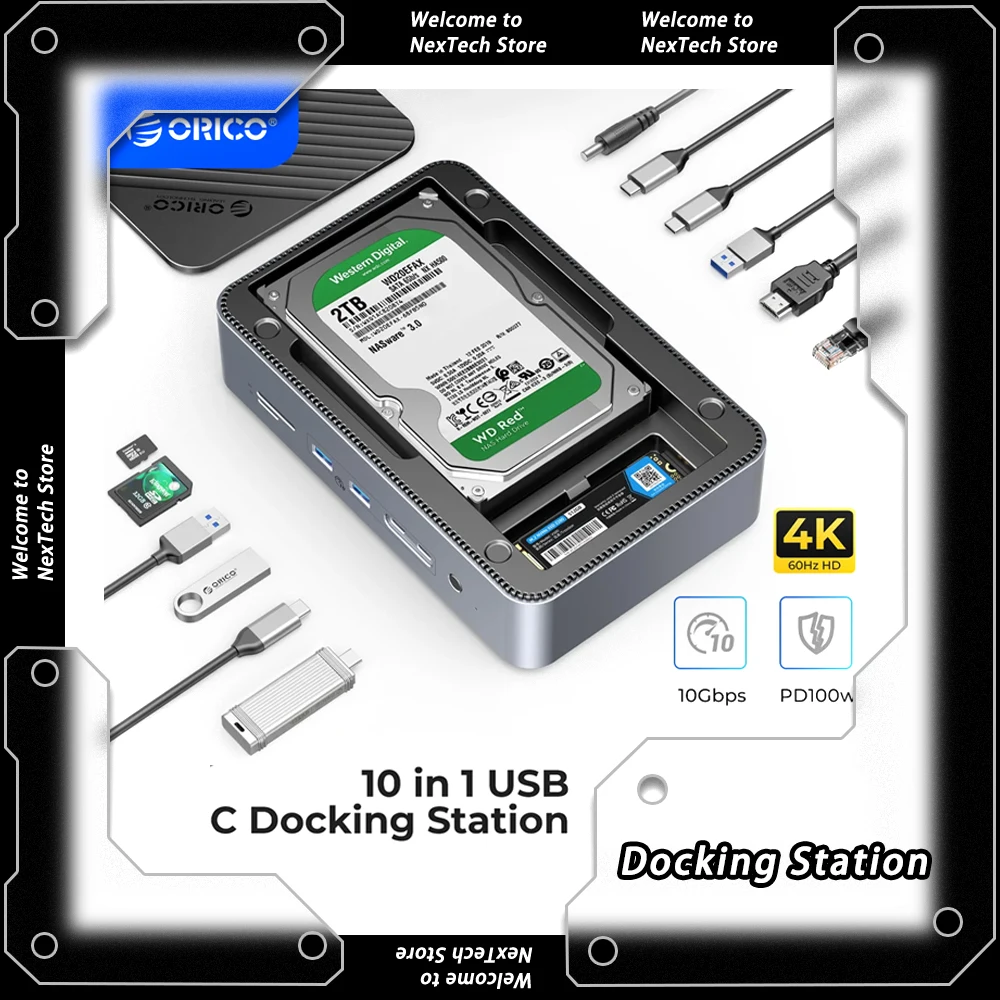 ORICO USB C 도킹 스테이션은 10개의 포트를 결합하여 일상적인 엔터테인먼트 및 게임 작업의 다양한 요구 사항을 완벽하게 충족하여 더욱 편리하고 편리한 사용 경험을 제공합니다.