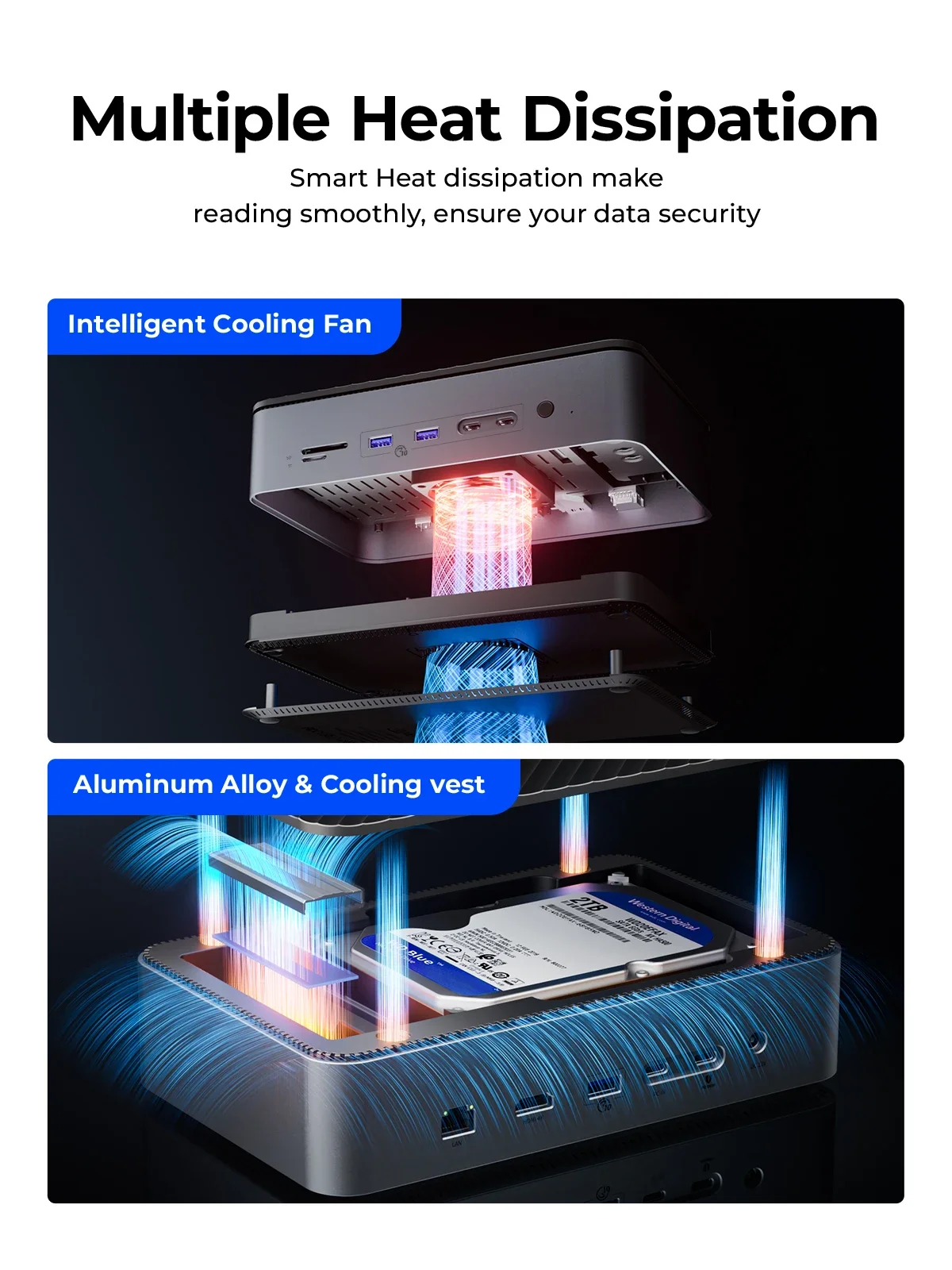 지능형 쿨러, 냉각 조끼 및 알루미늄 합금 쉘을 사용하면 원활하게 읽을 수 있으며 데이터 보안을 보장합니다.